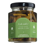 Die Kapernfrüchte wachsen aus der Mitte der weißen Blüte heraus. Sie schmecken nicht ganz so intensiv wie die Kapernknospen, besitzen dafür aber eine angenehme Fleischigkeit. Diese sind in nativem Olivenöl extra eingelegt und eignen sich sehr gut zum Aperitif. Eine echte Rarität mit einem vollendeten Geschmack.