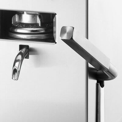 La Piccola setzt bei diesem Modell auf maximale Hygiene und hat der manuellen Piccola deshalb auch einen 1 Liter großen Glastank spendiert. Glas ist natürlichen Ursprungs und gibt grundsätzlich weniger Partikel ans Wasser ab als z.B. Kunststoff.