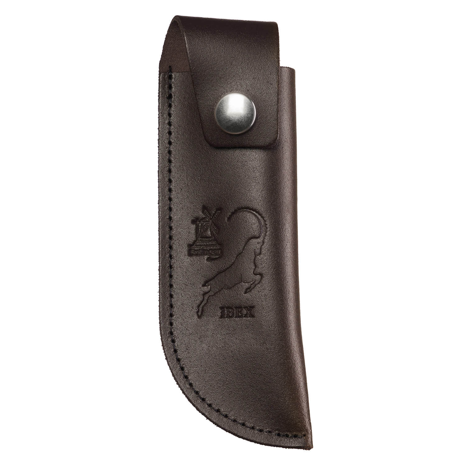 Die Windmühlenmesser IBEX 100 Lederscheide in braun vereint robusten Schutz und praktische Funktionalität. Sie ist hergestellt aus hochwertigem Nubuk-Rindsleder, extra stark vernäht und mit einem stabilen Druckknopf versehen. Die integrierte Gürtelschlaufe ermöglicht eine sichere Befestigung am Gürtel, damit Ihr Messer immer griffbereit ist, wenn Sie es brauchen.