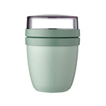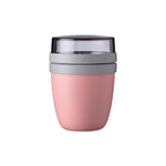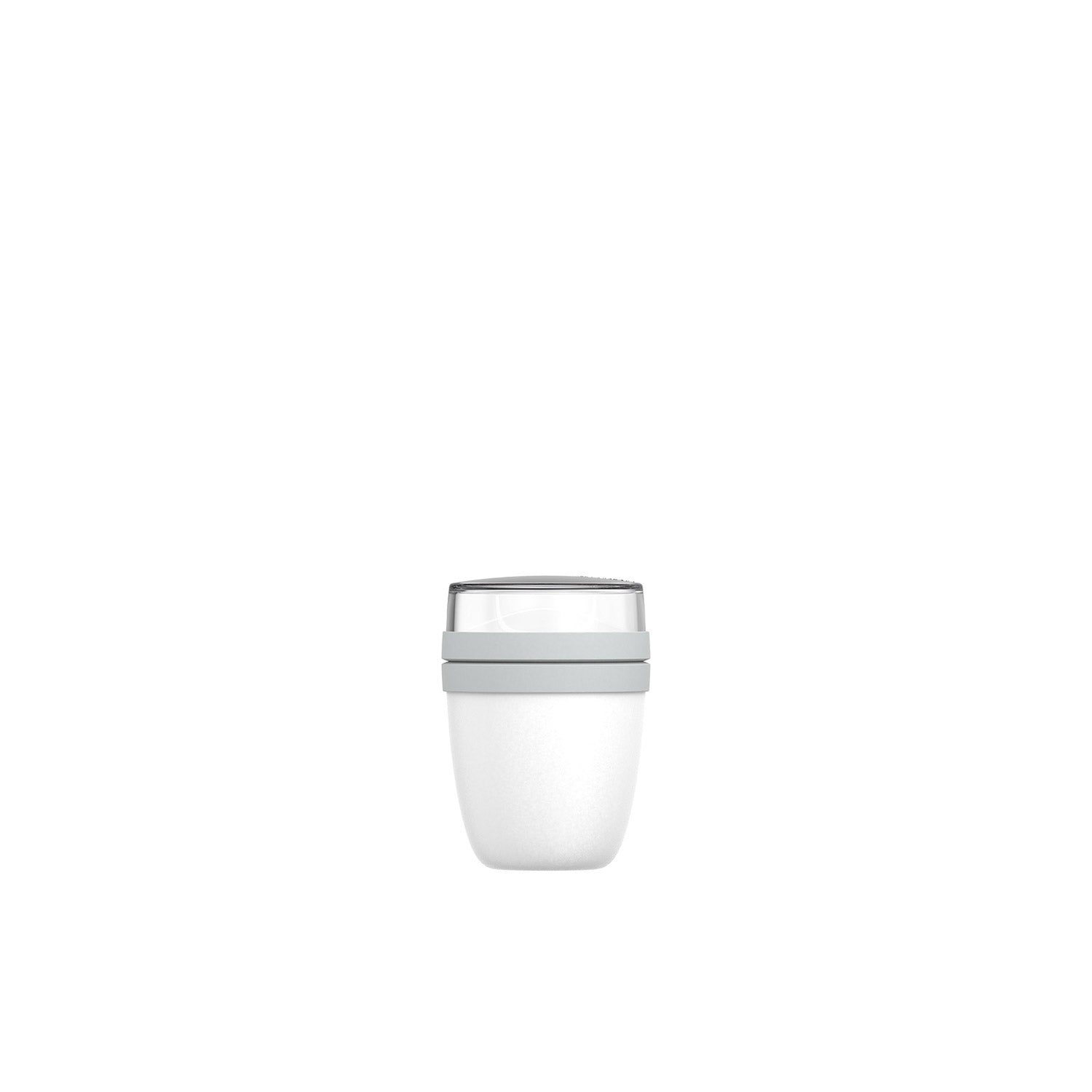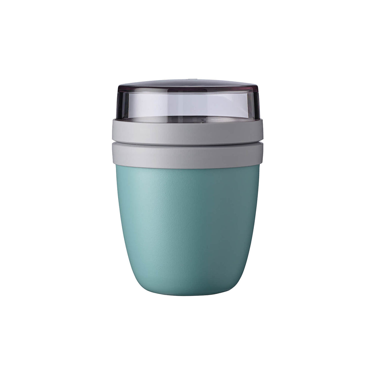 Der Lunchpot Ellipse mini in Nordic black ist ideal für den Transport von zum Beispiel Joghurt und Müsli oder Cerealien. Zwei praktische Behälter, in einer kompakten Einheit zusammengefasst. In den beiden Behältern können zwei unterschiedliche Komponenten einer Speise getrennt voneinander und vor allem auslaufsicher transportiert werden. Mit seiner Größe ist der Lunchpot Ellipse mini ideal für einen kleinen Snack zwischendurch oder für Schulkinder, die den Lunchpot ganz einfach mit in die Schule nehmen können. Der Inhalt des oberen, transparenten Behälters beträgt 120 ml, d.h. dort ist Platz für ca. 50 g Müsli oder Obst. Das Volumen bzw. der Inhalt des unteren Behälters bietet mit 300 ml Inhalt. Beide Behälter bestehen aus nachhaltigem Material, sind spülmaschinengeeignet und 100% BPA-frei.