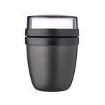 Der Lunchpot Ellipse mini in schwarz ist der kleine Bruder des bewährten Müsli- und Joghurtbechers. Dank der zwei verschiedenen (und vor allem auslaufsicheren!) Behälter kannst du alle Zutaten für dein Mittagessen oder deinen Snack unterwegs problemlos getrennt voneinander transportieren. Einfach bei Bedarf miteinander vermischen und genießen!