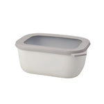 Die Multischüssel Cirqula rechteckig in nordic white mit einem Inhalt von 500 ml ist ideal für die Reste vom Auflauf am Vorabend oder zum Aufbewahren einer leckeren Suppe. Die Schüssel hat einen fest schließenden Deckel mit Sichtfenster, kann im Kühlschrank, Tiefkühler oder (ohne Deckel) in der Mikrowelle verwendet und nach Gebrauch in der Spülmaschine gereinigt werden.