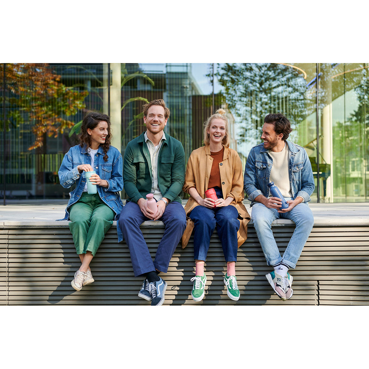 Du musst Dich bereits früh auf den Weg machen- Da wird das wach werden mit einer heißen Tasse Cappuccino oder Tee doch sicher angenehmer! Egal, wie lange Du auch mit dem Zug, Bus oder Auto unterwegs bist - mit dem Thermobecher Ellipse 375 ml in Nordic green kannst Du unterwegs immer Dein Heißgetränk nach Wahl genießen. Denn der Trinkbecher aus doppelwandigem Edelstahl hält Dein Getränk immer schön warm, und zwar bis zum letzten Schluck. Speziell für Kaffeeliebhaber: Beim Öffnen des Deckels strömt Dir herrlich frischer Kaffeeduft entgegen. Hmm, so startet man doch gerne in einen frühen Tag. Der Becher ermöglicht, wie bei einer Kaffeetasse, den Kaffeegenuss über den kompletten Becherrand. Deine Getränke bleiben in dem Becher bis zu 4 Stunden warm und 8 Stunden kühl. Die Außenhülle des Bechers bleibt dabei immer kühl und trocken, unabhängig von der Temperatur im Inneren. Um möglichst lange ein optimales Trinkerlebnis des farbigen Thermobechers sicherzustellen, empfehlen wir die Reinigung per Hand. Der Deckel samt seiner Kunststoffteile kann auch in der Spülmaschine gereinigt werden.