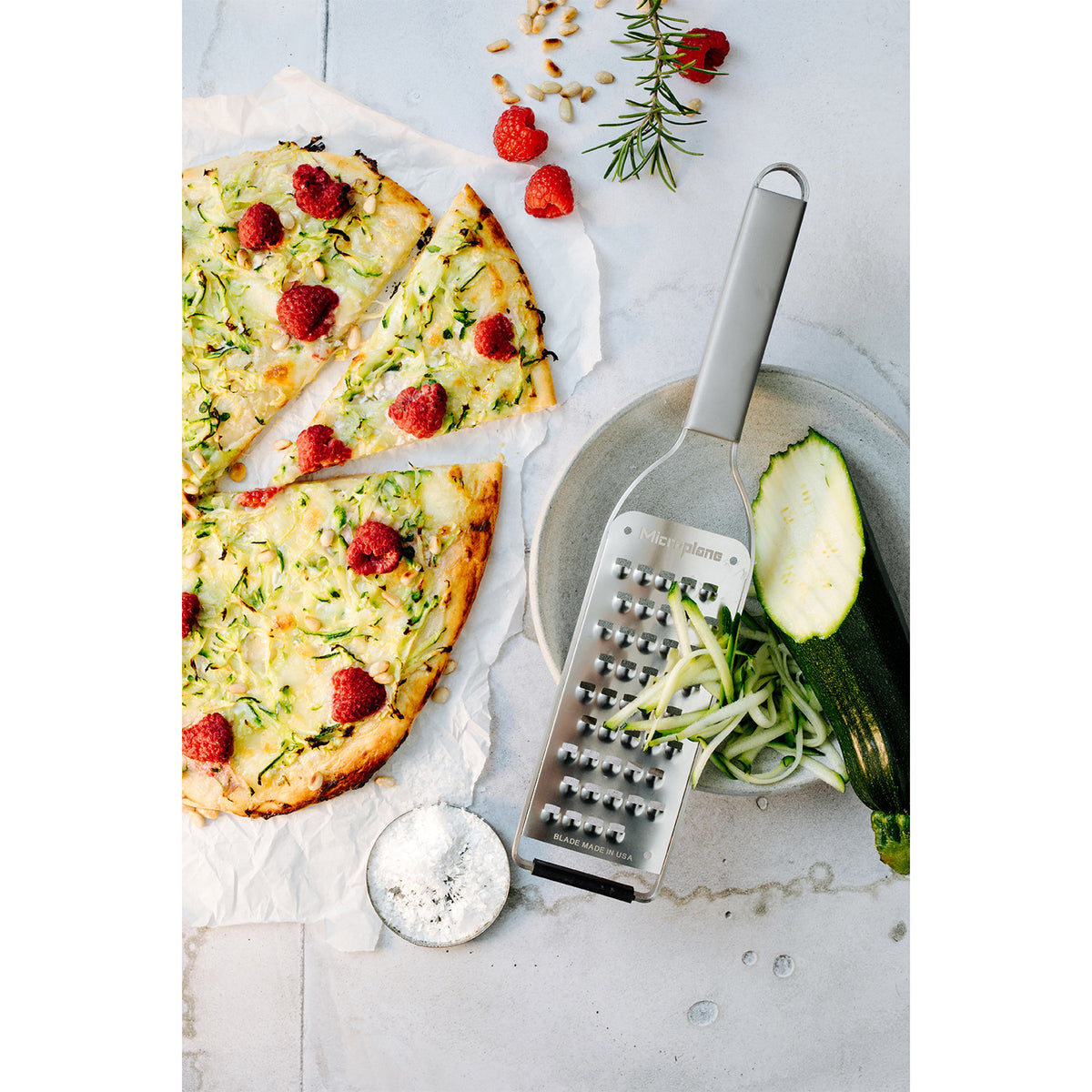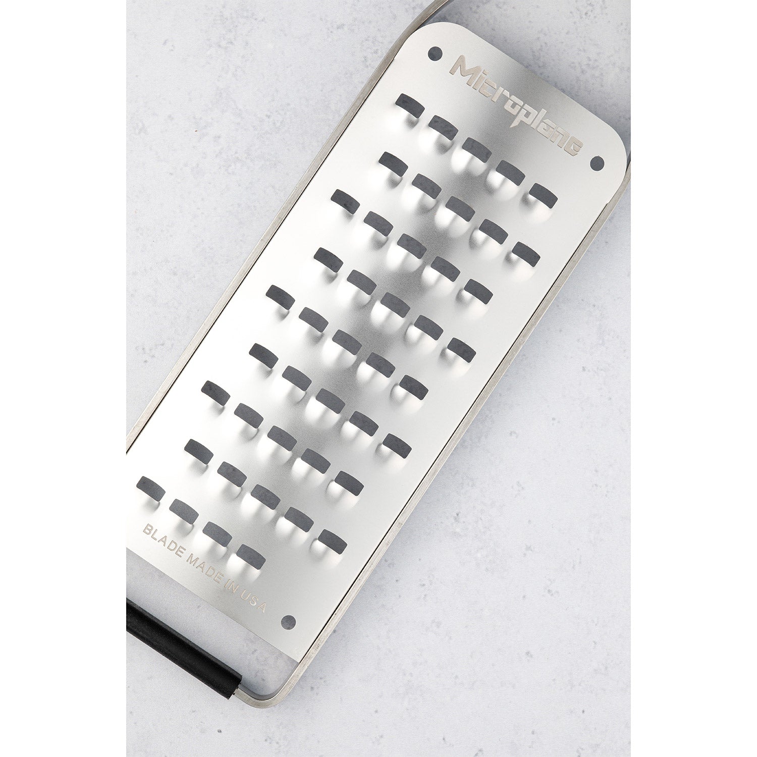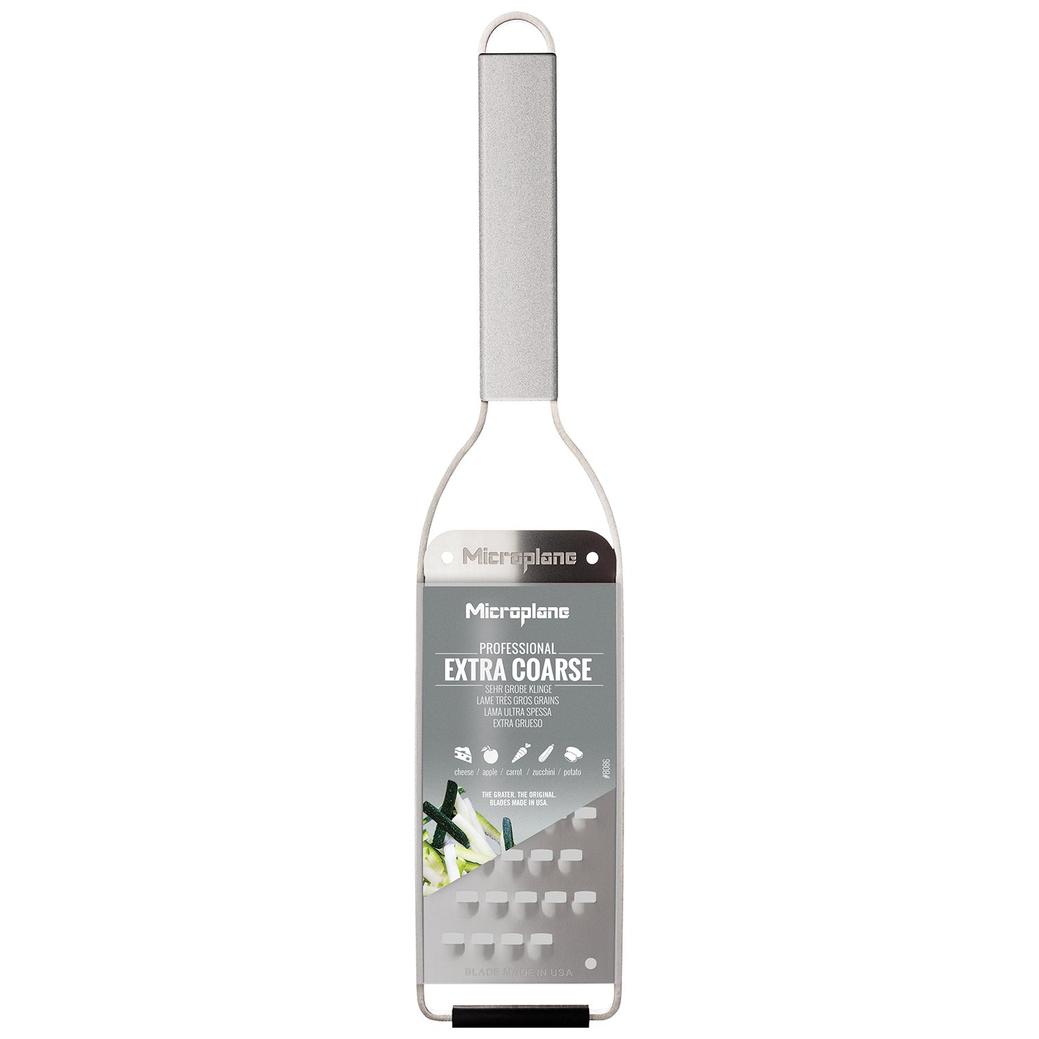 Die Microplane New Professional Reibe mit sehr grober Raspel ist das ideale Werkzeug, wenn es auf größere, gleichmäßige Raspel ankommt. Ob für Käse, Zucchini, Kartoffeln oder andere Gemüsesorten – mit ihren hochwertigen Edelstahlklingen und der speziellen Schneideanordnung erleichtert sie die Arbeit und liefert perfekte Ergebnisse. Diese Reibe ist unverzichtbar für alle, die großen Wert auf Qualität und Effizienz in der Küche legen.