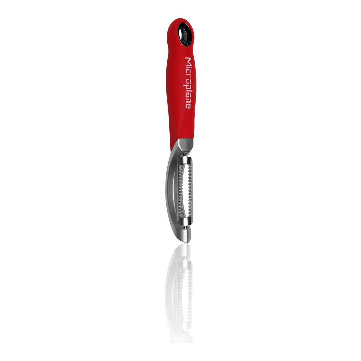 Mit dem Microplane Profi-Schäler mit gezahnter Klinge geht das Schälen sprichwörtlich im Handumdrehen. Das Geheimnis liegt nicht nur in den vielen kleinen Mikrozähnen, sondern auch in der Besonderheit der doppelseitigen Klinge.