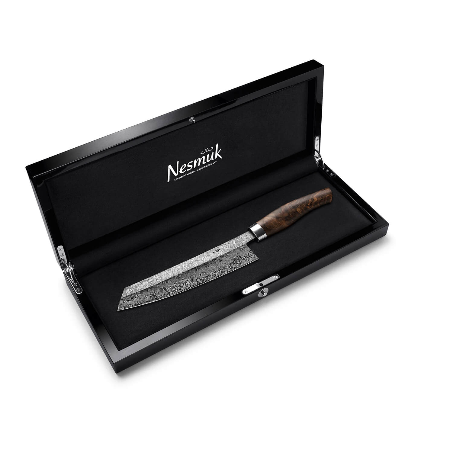 Nesmuk EXKLUSIV C100 Kochmesser 180 mm mit Griff Walnuss Maser - handwerkliche Präzision und außergewöhnlicher Damaszener Stahl
