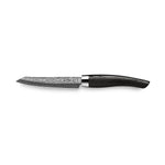 - Klinge: 90 mm, wilder Damast, Kohlenstoffstahl, 210 Lagen, 63 HRC, beidseitiger Hohlschliff, NPC-Beschichtung
