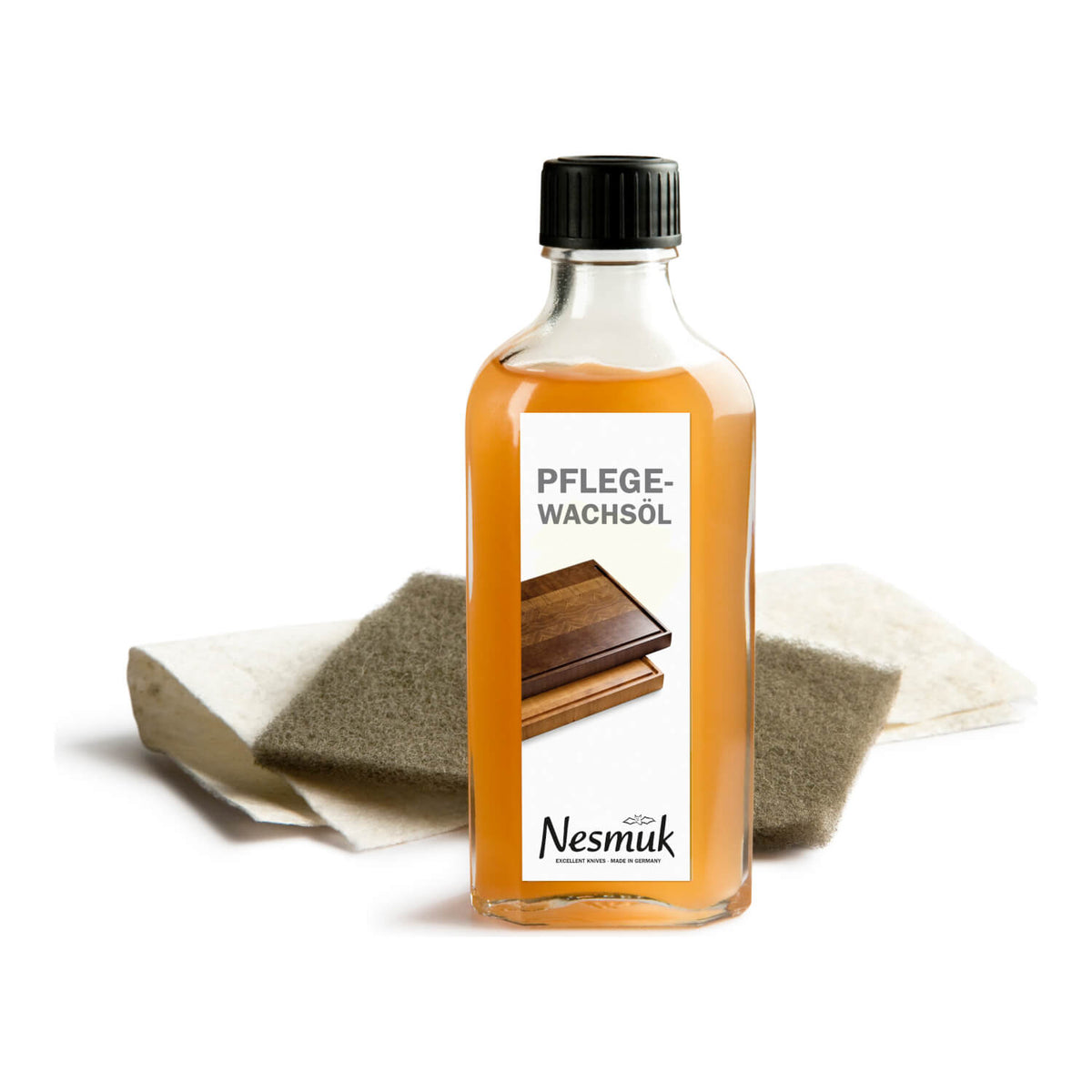 Zur Pflege aller Nesmuk Bretter empfiehlt sich das Nesmuk Pflegewachsöl. Die Komposition der natürlichen Inhaltsstoffe ist perfekt abgestimmt auf das Eichenholz aller Nesmuk Holzbretter: Hergestellt aus reinen Pflanzenölen, wertvollen Naturharzen und feinstem Bienenwachs, reduziert es die Saugfähigkeit und verfestigt die Holzoberfläche. Jedem Pflegewachsöl liegt ein Schleifvlies, ein weiches Baumwolltuch und eine Anleitung bei.