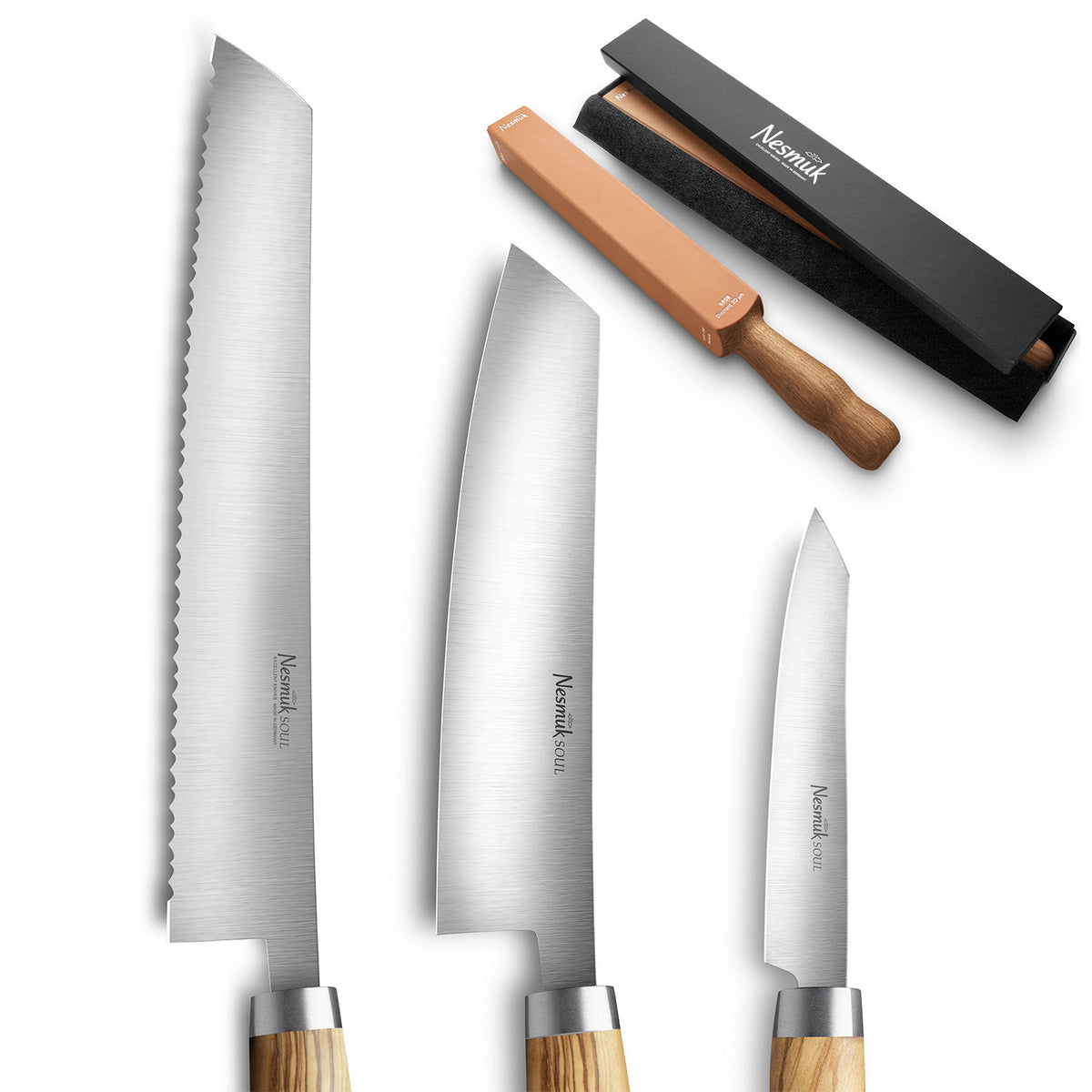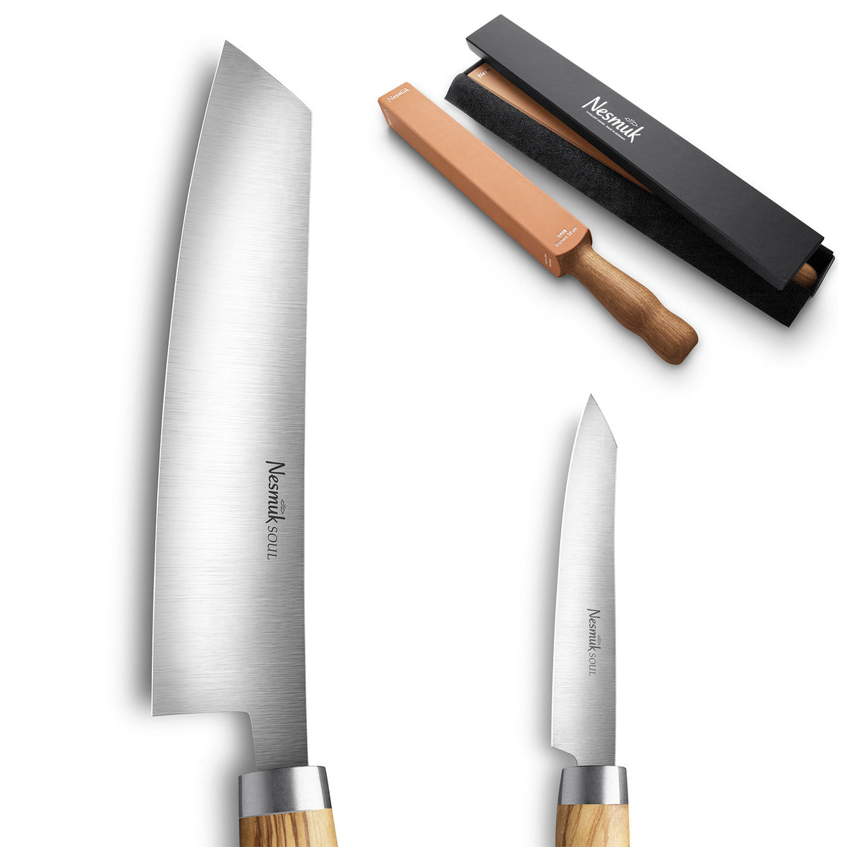 Dieses Soul Messerset von Nesmuk mit Olivenholz Griff bietet Ihnen 2 Profi Messer, ideal für Ihre Küche. Enthalten sind das Kochmesser 180 mm, der Allrounder in der Küche und das Office Messer 90 mm, mit dem Putzen und Schälen problemlos gelingt.