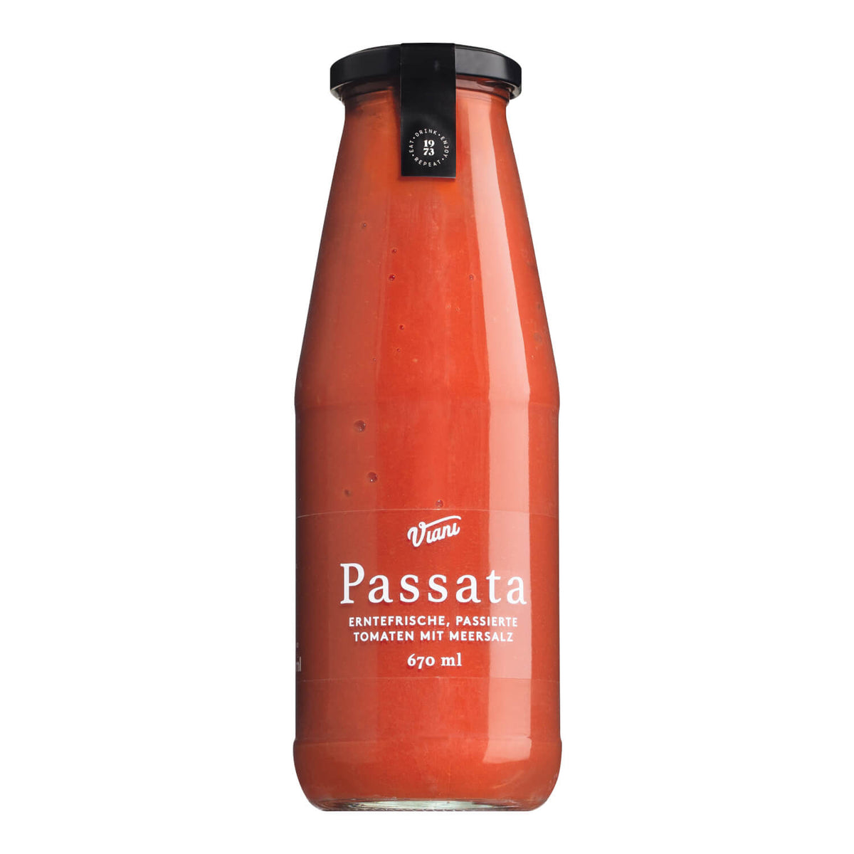Aus reifen, italienischen Tomaten und einer Prise Salz besteht die Passata. Ob für Tomatensuppen, -saucen oder auf Pizzaböden, sie ist eine fruchtige Basis für viele Gerichte.