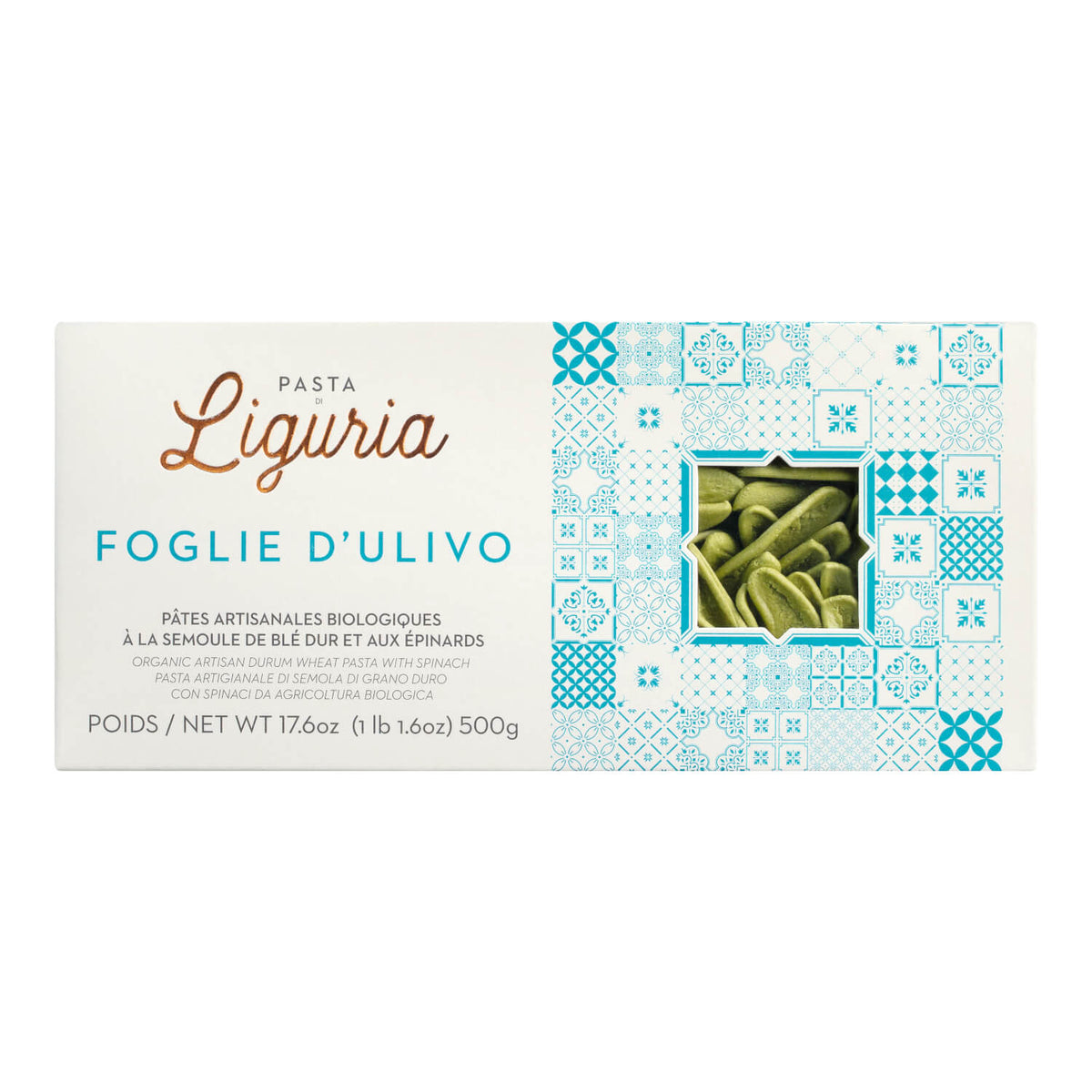 Die hübschen Pastablätter sind Olivenblättern nachempfunden, die die Landschaft Liguriens in Küstennähe prägen. Sie sind mit Spinat gefärbt.