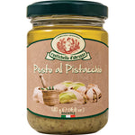 Das Pistazienpesto wird mit der feinen Pistazie Bronte di Catania hergestellt, mit dem zusätzlichen Bonus von Nativem Olivenöl Extra aus der Region Aprutino Pescarese. Bei Raumtemperatur verbrauchen oder bei schwacher Hitze leicht erwärmen. Nach dem Öffnen im Kühlschrank aufbewahren und innerhalb von 3-4 Tagen verbrauchen. Menge reicht für 1-2 Personen.