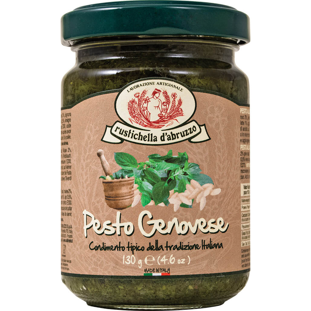 Das klassische Pesto alla Genovese von Rustichella dAbruzzo wird durch ein innovatives Herstellungsverfahren ohne Pasteurisierung produziert, das ihm einen qualitativ hochwertigen Geschmack verleiht, ohne die hohe Qualität der Zutaten zu beeinträchtigen. Das Pesto alla Genovese von Rustichella dAbruzzo ist genau wie frisches, hausgemachtes Pesto, eine Eigenschaft, die es qualitativ und geschmacklich auszeichnet. Der Zusatz von Nativem Olivenöl Extra aus dem Gebiet von Aprutino Pescarese macht es zu einem Gewürz, das auf Ihrem Tisch nicht fehlen darf. Wir empfehlen die Kombination mit dem Fusilloni Giganti Rustichella dAbruzzo. Zusammen mit frischem Ricotta-Käse ist er eine Alternative zur Füllung der Cannelloni Rustichella dAbruzzo.