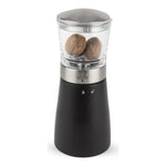 Diese an der Kombination von Holz, Edelstahl und Acryl zu erkennende Muskatmühle erlaubt das feine Reiben der Nüsse ohne Gefahr für die Finger.