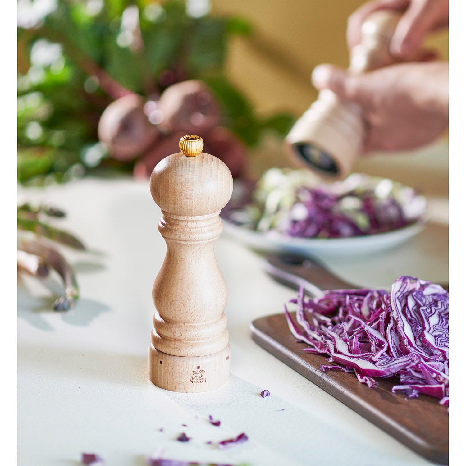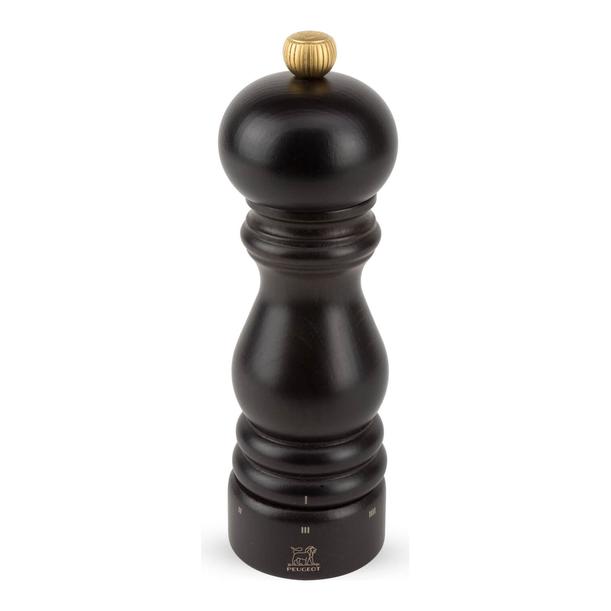 Die Zuverlässigkeit des Peugeot Mahlwerkes gepaart mit der Eleganz eines schokofarbenen Korpuses aus Holz: der Peugeot-Löwe präsentiert Ihnen seine emblematische Salzmühle Paris uSelect 18 cm.