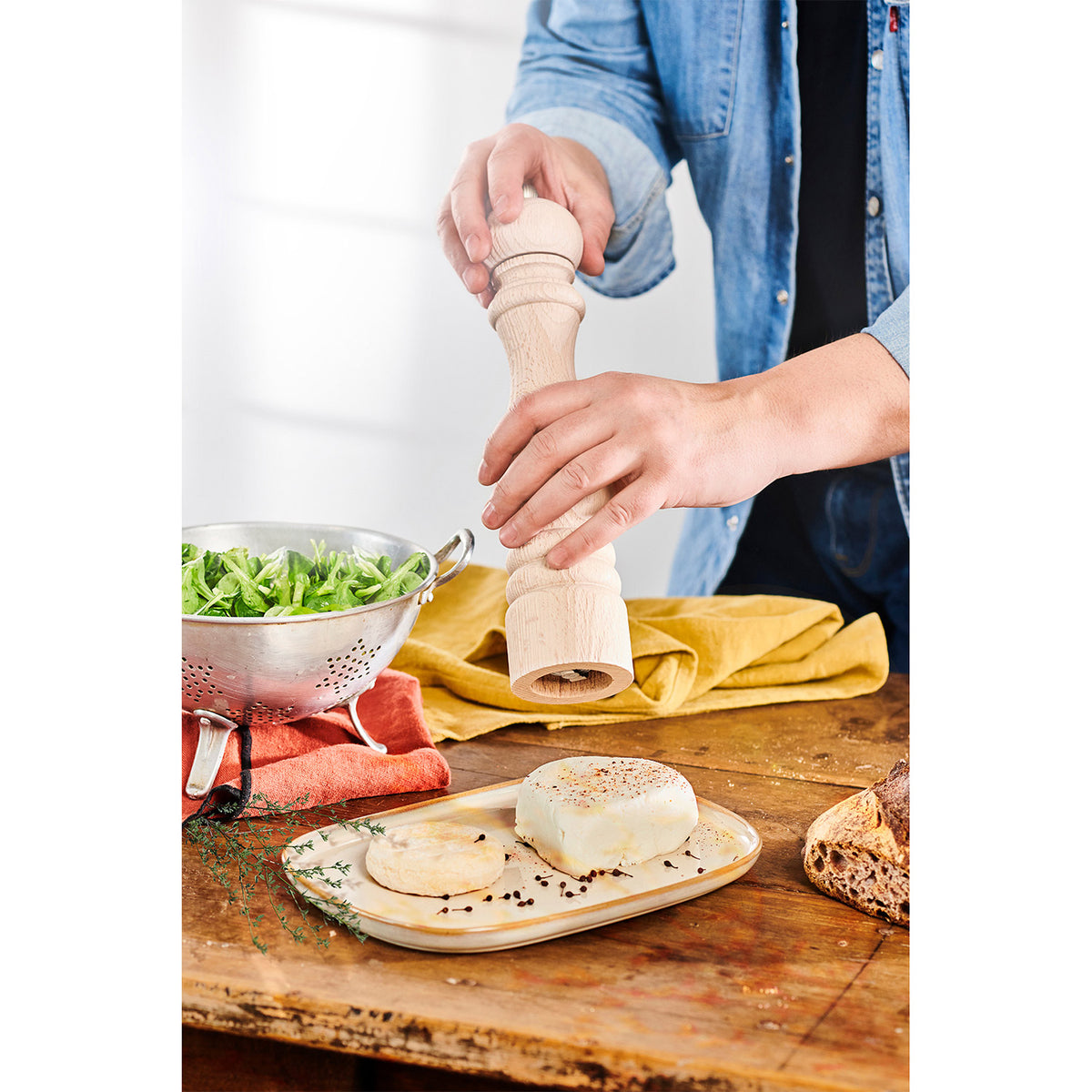 Eine Holzmühle Made in France, Teil eines globalen/umfassenden Umweltansatzes: Bühne frei für die 30 cm große Pfeffermühle Paris Nature. Zusammen mit dem kraftvollen Fairtrade-Pfeffer aus Kambodscha ist diese Pfeffermühle ein unverzichtbarer Bestandteil der Küche.