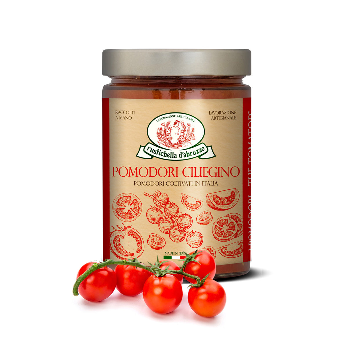 Pomodori Ciliegino - Kirschtomaten geschält in eigenem Saft von Rustichella, 550 g