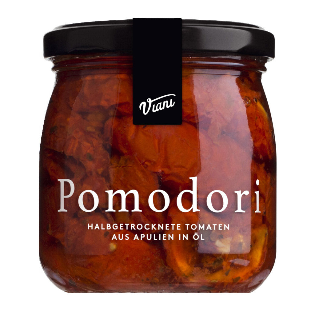 Pomodori - halbgetrocknete Tomaten aus Apulien in Olivenöl mit Kräutern, 180 g