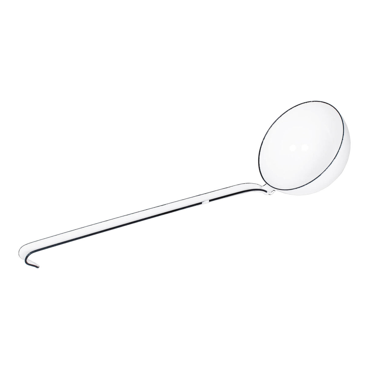 Nicht nur für Suppenliebhaber ist der Schöpflöffel oder Suppenkelle aus Emaille. In vielen Küchen als optischer Blickfang aufgehängt, leistet sie viele praktische Dienste beim Servieren und Schöpfen von flüssigen Speisen.