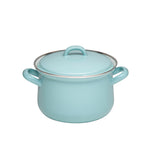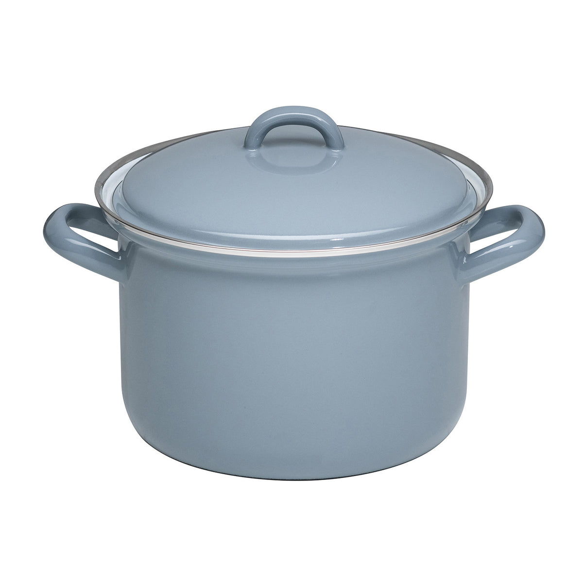 Der Fleischtopf mit Deckel in grau hat die klassische gerade Form und zwei Emaillegriffe. Der Topf hat einen Durchmesser von 16 cm mit einer maximalen Füllmenge von 1,5 Liter.