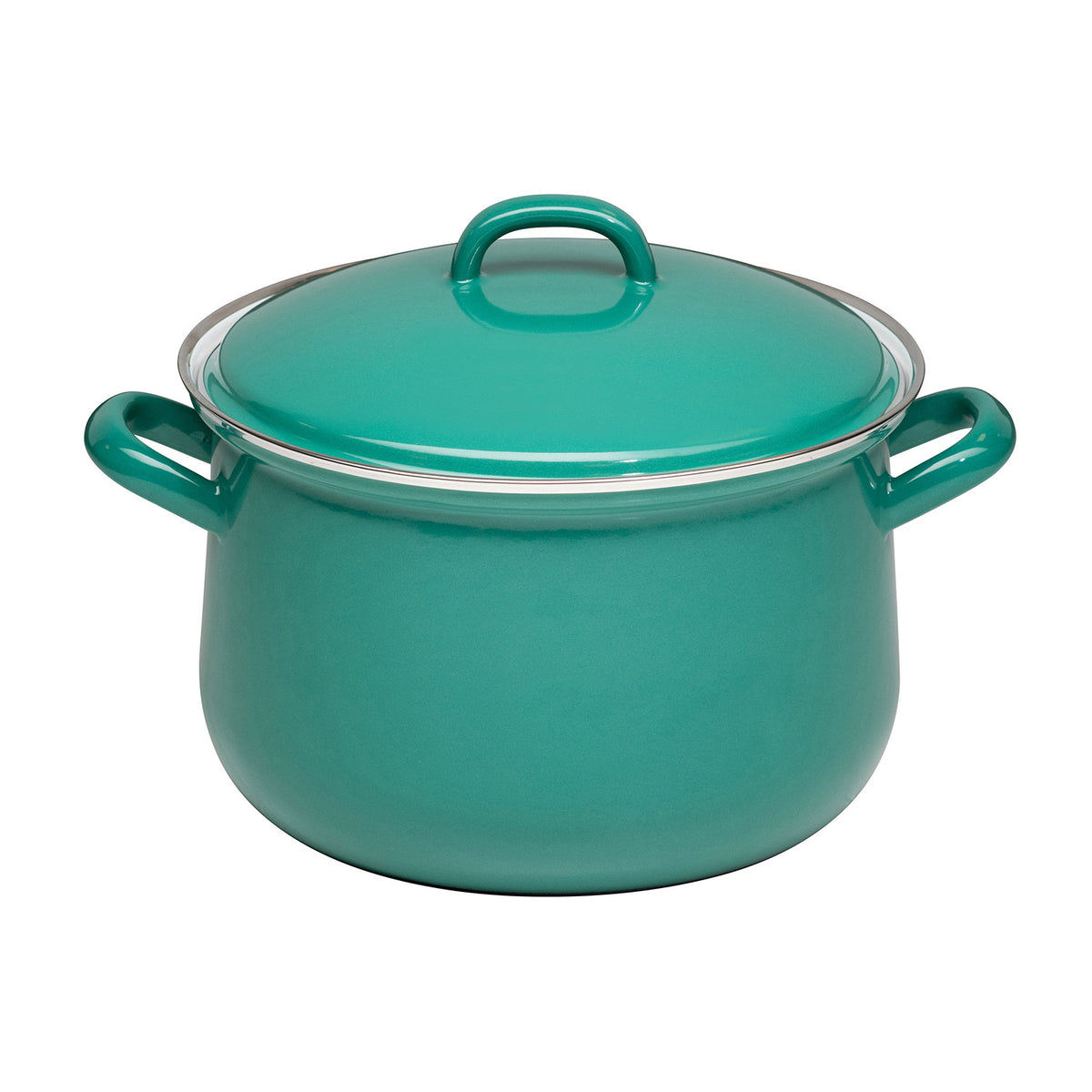 Das Kochgeschirr aus Emaille kann auf allen Herdarten (Gas, Elektro, Glaskeramik, Induktion und sogar über offenem Feuer) verwendet werden. Dank des Eisenkerns wird die Wärme schnell geleitet und dann gespeichert: für nachhaltiges, energiesparendes Kochen.