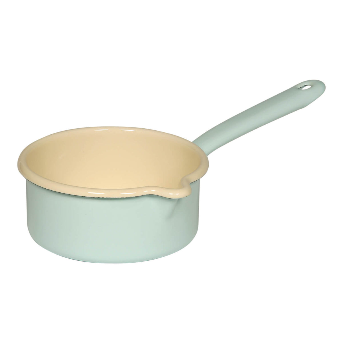 Eine Stielkasserolle braucht es in jeder Küche, unsere Version aus Emaille ist einer jener Formen, die in Österreich wohl jeder kennt. Mit dem praktischen Ausguss und langem Stiel kann Flüssiges wie Milch, Wasser, Suppe, Saucen einfach serviert werden ohne zu kleckern.