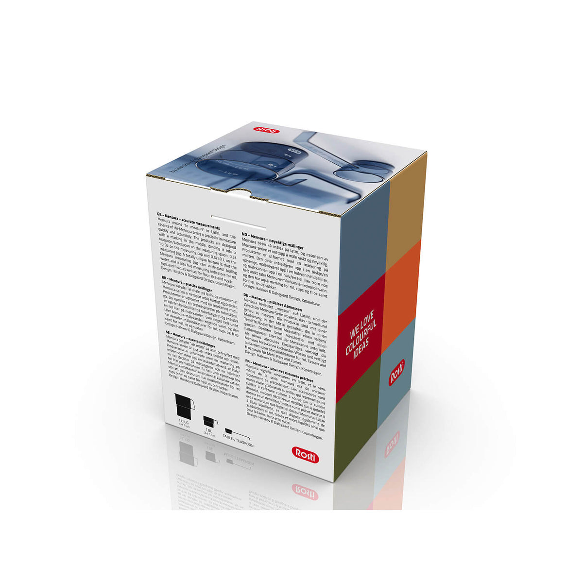 Mensura bedeutet „messen“ auf Latein, und der Zweck der Mensura-Serie ist genau das – schnell und genau zu messen. Das Mess-Set in klar besteht aus einem 1,0 Liter Messbecher, einem Dezilitermaß und einem Messlöffel aus SAN, einem sehr transparenten Material mit einer hohen Qualität und guter Haltbarkeit.