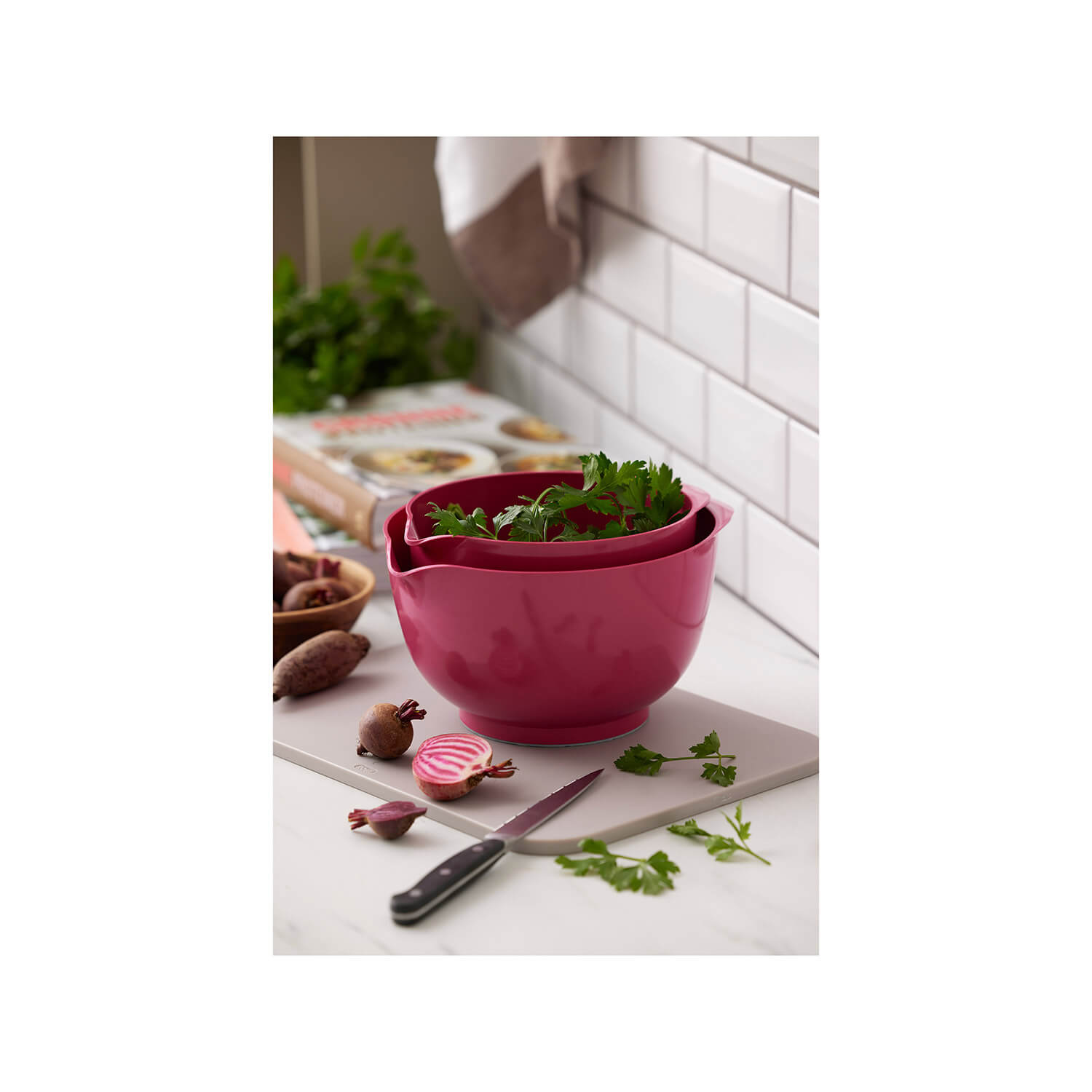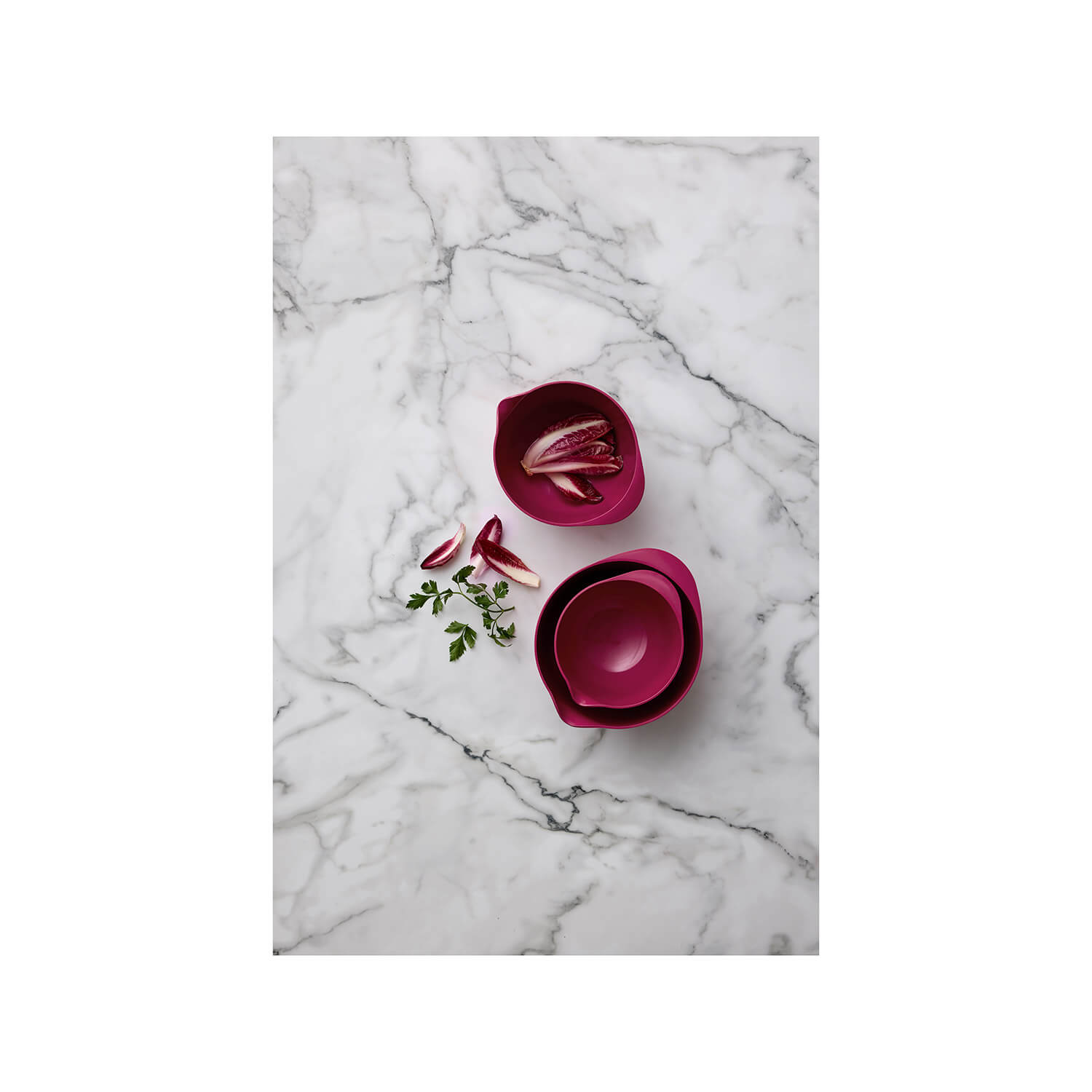 Die Margrethe-Schüssel 250 ml in pink ist die klassische Rührschüssel mit dem guten Griff, dem praktischen Ausguss und dem rutschfesten Bodenring. Die neue Version der Margrethe-Schüssel besteht aus Durostima®, einem recycelbaren Kunststoffmaterial. Die Schüssel ist jetzt noch robuster und bruchsicherer, und mit dem neuen Material auch für die Verwendung in der Mikrowelle und im Gefrierschrank geeignet. Die Margrethe-Schüssel eignet sich sowohl für die Zubereitung als auch zum Servieren, und wenn ein Deckel dazu gekauft wird, verwandelt sich die Rührschüssel in eine praktische Aufbewahrungsschüssel.