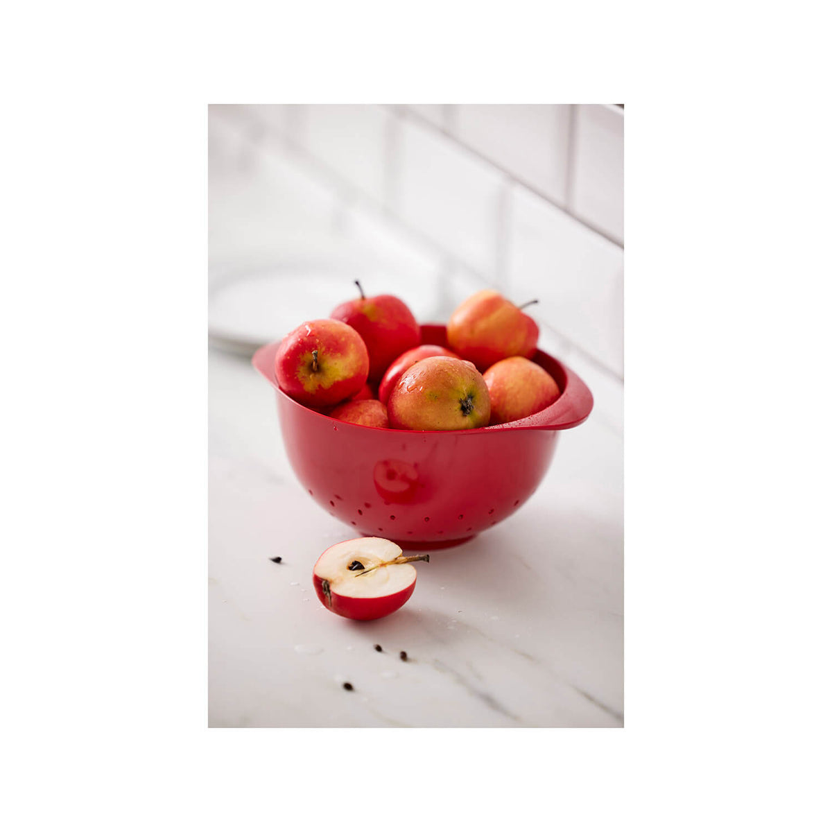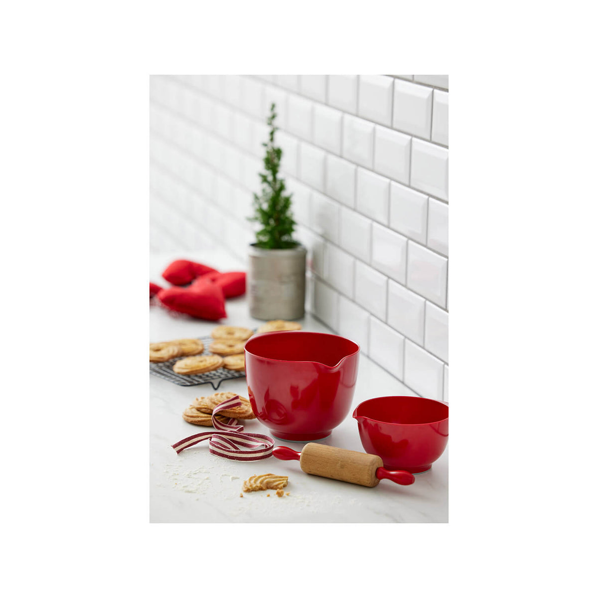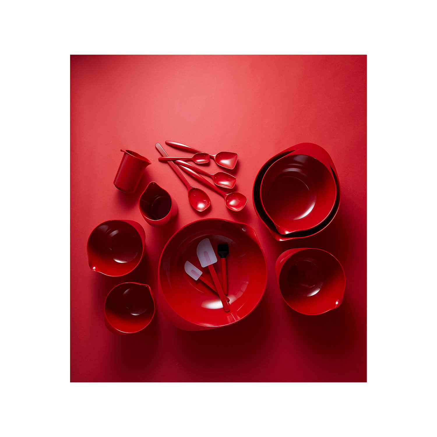 Die Margrethe-Schüssel 250 ml in rot ist die klassische Rührschüssel mit dem guten Griff, dem praktischen Ausguss und dem rutschfesten Bodenring. Die neue Version der Margrethe-Schüssel besteht aus Durostima®, einem recycelbaren Kunststoffmaterial. Die Schüssel ist jetzt noch robuster und bruchsicherer, und mit dem neuen Material auch für die Verwendung in der Mikrowelle und im Gefrierschrank geeignet. Die Margrethe-Schüssel eignet sich sowohl für die Zubereitung als auch zum Servieren, und wenn ein Deckel dazu gekauft wird, verwandelt sich die Rührschüssel in eine praktische Aufbewahrungsschüssel.