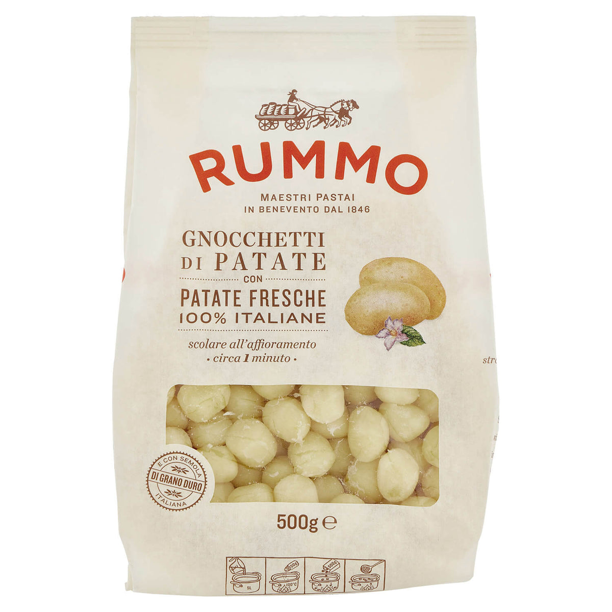 Erleben Sie mit den Rummo Gnocchetti di Patate N° 121 kleine, zarte Kartoffelklößchen, voller Geschmack von 100% italienischen Frischkartoffeln. Ideal für leichte Saucen mit Fisch oder Gemüse. Mit einer Kochzeit von nur 1 Minute bieten sie blitzschnellen Genuss für authentische italienische Küche.