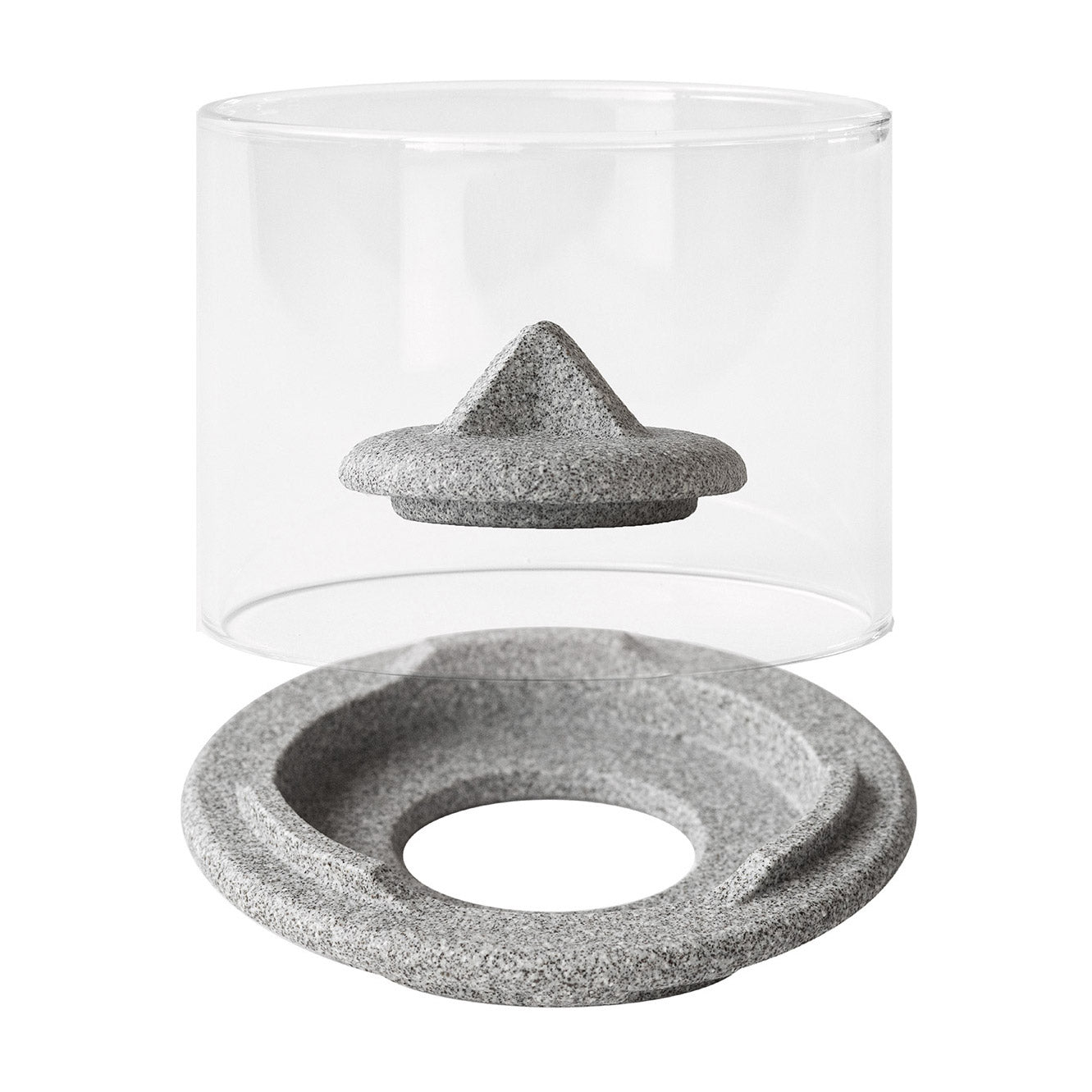Licht und Wärme aus Wachs. Atmosphärischer Schein taucht Ihre Räume in wohltuendes Licht und erfreut das Gewissen. Als Brennmaterial dienen Kerzenreste. Das ist nachhaltig und spart Strom. Das Schmelzfeuer Indoor Granicium mit Windglasaufsatz erzeugt wohlige Wärme an Ihrem Lieblingsplatz. Auspacken, anzünden und wohlfühlen. Das Schmelzfeuer von Denk hat einen Durchmesser von 13 cm, eine Höhe von 19 cm und wiegt ca. 1,3 kg.