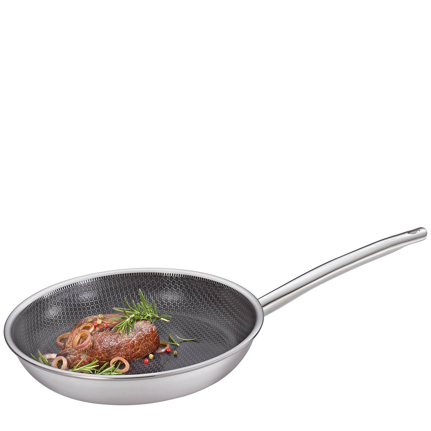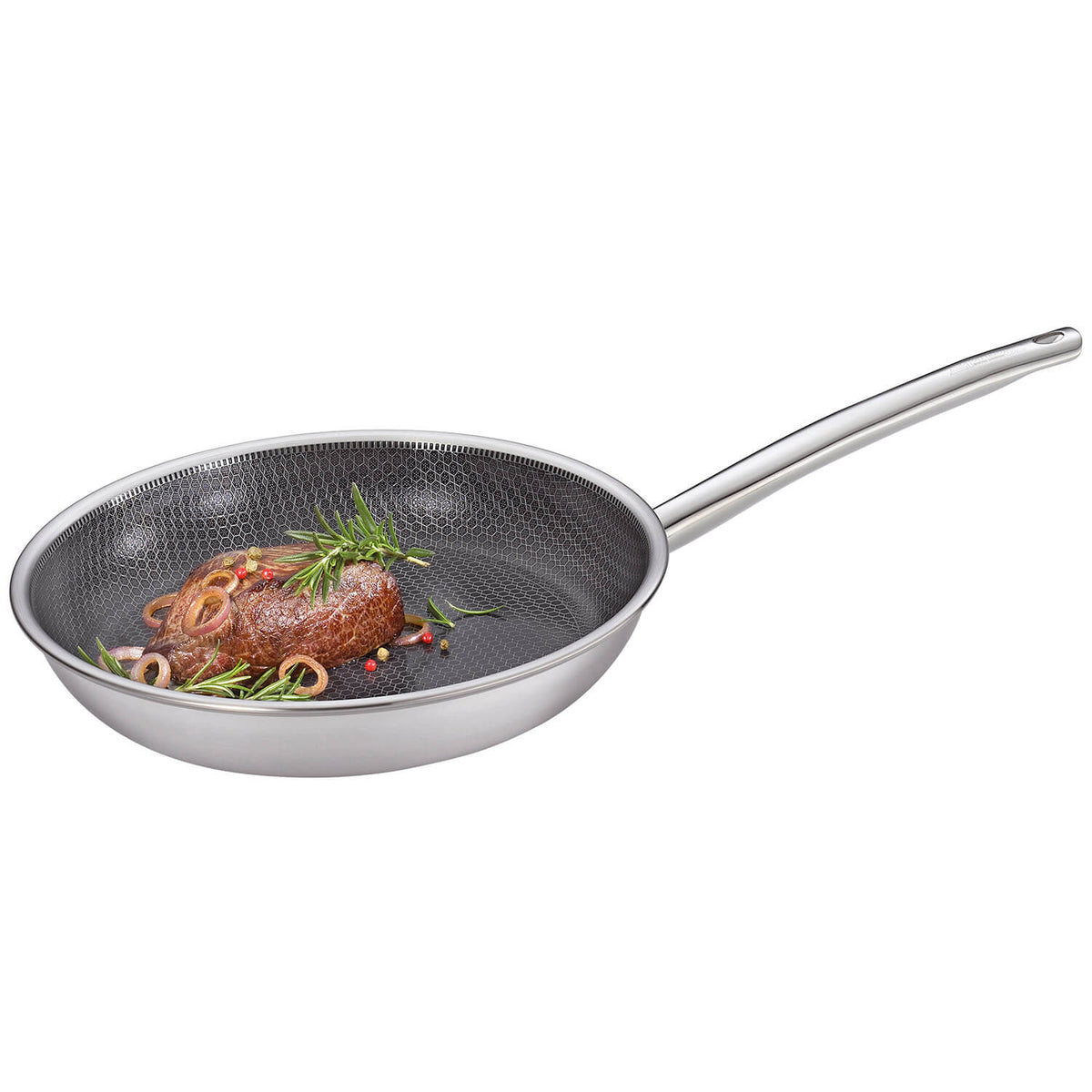 Erleben Sie ultimatives Braten mit der Spring Bratpfanne Vulcano Cut Resist Pure Ø 20 cm. Hergestellt aus 5-Lagen Mehrschichtmaterial und einer erhabenen Wabenstruktur aus Edelstahl, bietet sie eine optimale Wärmeverteilung und höchste Abriebfestigkeit. Die 2-fache Antihaftbeschichtung auf mineralischer Basis sorgt für langanhaltende Leistung ohne PFAS.