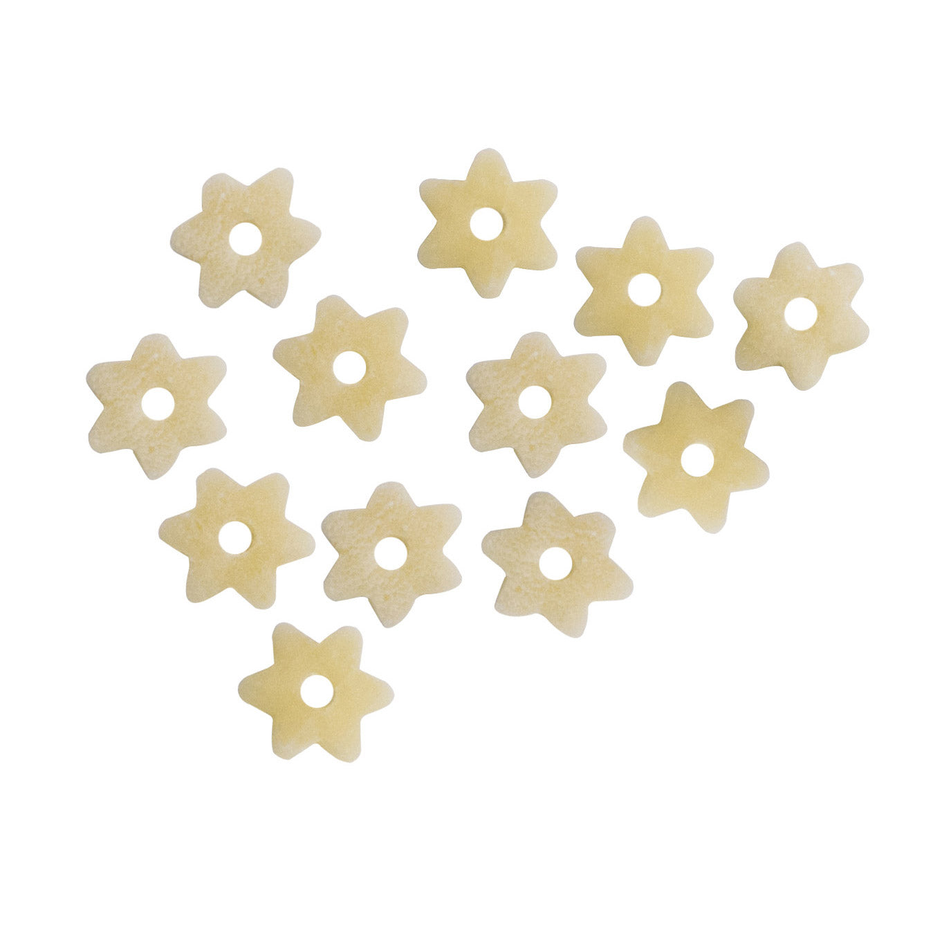Nudeln in Sternchenform sind immer ein Hingucker. Diese Hochwertigen Hartweizengrießnudeln empfehlen wir in Kombination mit Tomatensoße oder einfach einer leckeren Sternchensuppe. Die Kochzeit beträgt 7 Minuten.