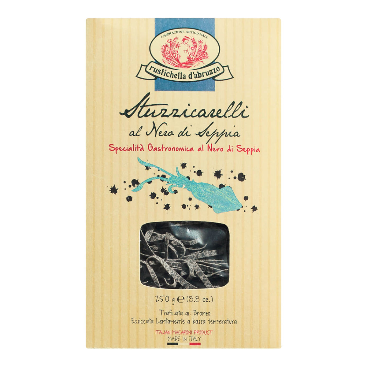 Das Meer und seine Düfte, Farben und Geschmäcker. Die Stuzzicarelli al Nero di Seppia Rustichella dAbruzzo, hergestellt aus frischen Eiern, hochwertigem Hartweizengrieß und natürlicher Tintenfischflüssigkeit, bringen den Geschmack der besten Meeresfrüchte-Rezepte auf Ihren Tisch. Probieren Sie sie mit gesalzenem Kabeljau, etwas Bottarga (getrockneter Meeräsche-Rogen), frischer Petersilie und Rustichella dAbruzzo-Olivenöl oder mit der Rustichella Vongole alla Marinara (Venusmuscheln in Tomatensoße) mit einem Spritzer PrimoGrano Rustichella dAbruzzo Monokultivar INTOSSO-Olivenöl und frischer Petersilie.