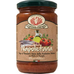 Der Sugo alla napoletana von Rustichella, der durch langsames Kochen von Tomatenmark mit Sardellenpaste, Petersilie und nativem Olivenöl extra aus dem Gebiet von Aprutino Pescarese zubereitet wird. Unbedingt mit Tonnarelli al nero di seppia und Spaghetti lunghi Rustichella dAbruzzo probieren.