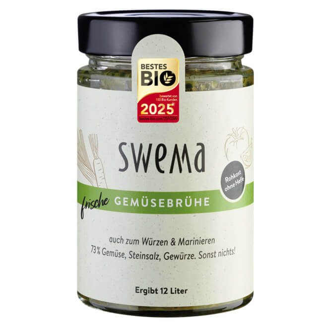Produktinfos für SweMa frische milde Gemüsebrühe Bio 210 g Glas - für 8 Liter