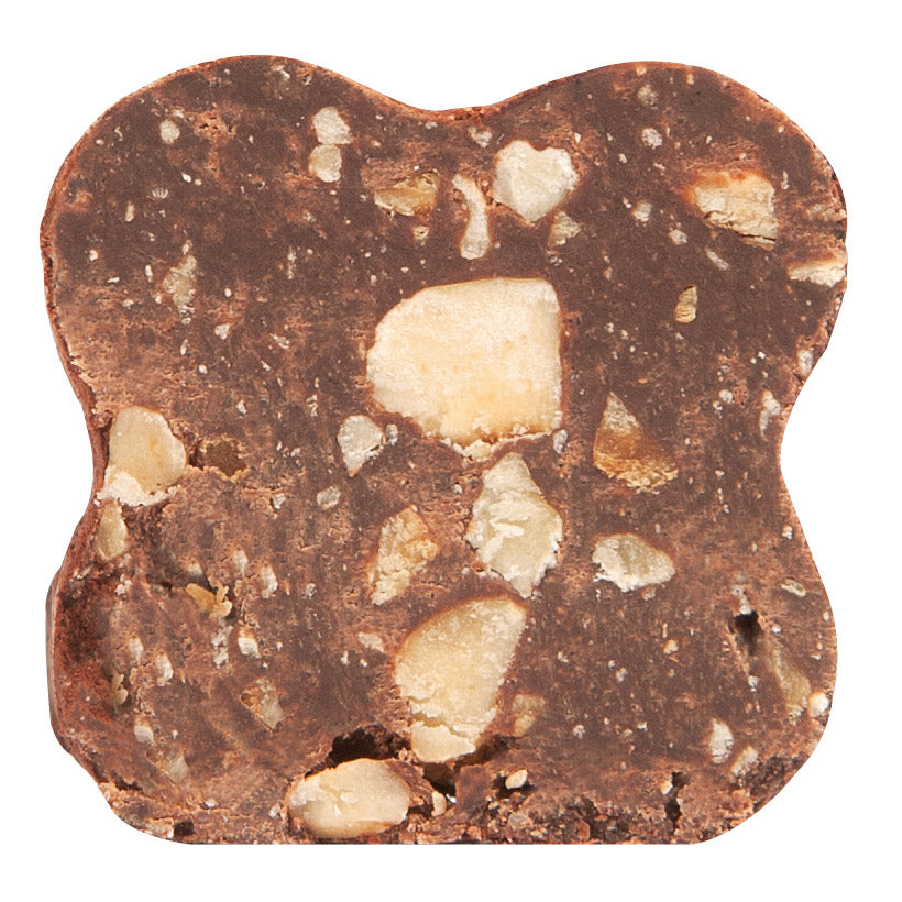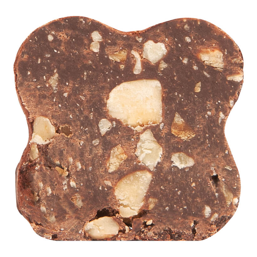 Milchschokolade mit Haselnüssen [Kakaogehalt: 30% mindestens*] [56%] (Zucker, Kakaobutter, Haselnusskerne [15%] Kakaomasse, Vollmilchpulver , Mandelkernen , Emulgator: Sojalecithin , natürliches Vanillearoma), gehackte und gemahlene Haselnusskerne , Kakaopulver, Zucker.