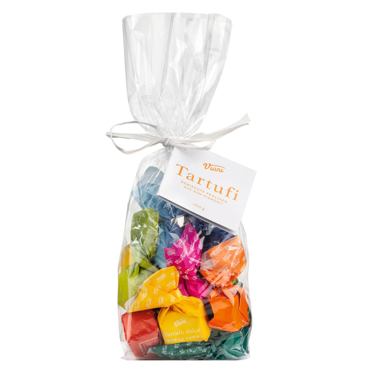 In diesem Kennenlern-Beutel stecken jeweils ein Tartufo dolce nero, extranero, bianco und con amaretti und je 2 Tartufi in den Sorten al pistacchio, al caramello salato, al gianduja, stracciatella und panna cotta.