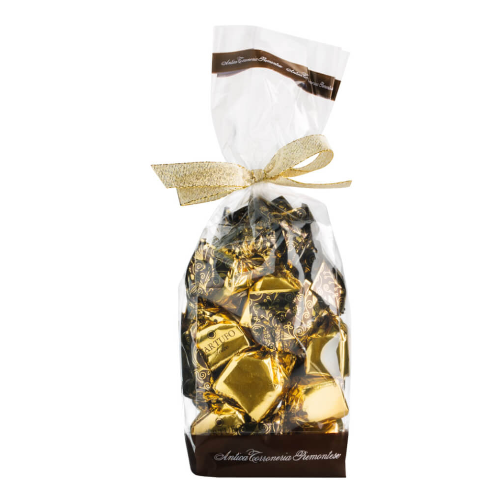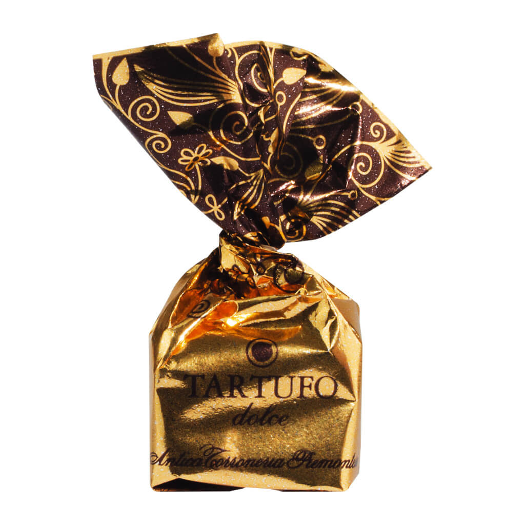 Tartufi dolci neri - dunkle Schokoladentrüffel in goldener Verpackung von Antica Torroneria Piemontese