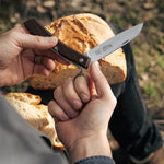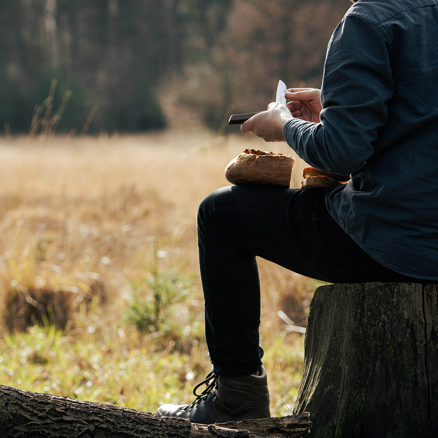 Carbonstahl zeichnet sich durch die sehr einfache und effektive Nachschärfbarkeit ohne großen Aufwand aus. Dies ist vor allem unterwegs von Vorteil.