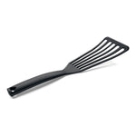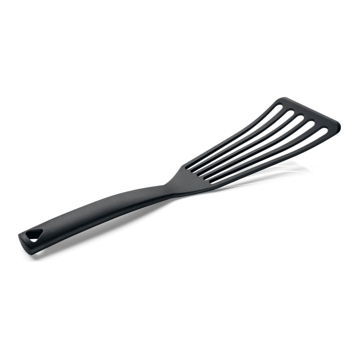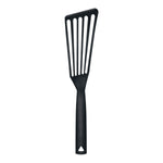 Stabiler und hoch temperaturfester Wender für beschichtete Pfannen. Der hochwertige Spezialkunststoff ist bis zu 270° C hitzefest, so dass angescholzene Kanten der Vergangenheit angehören. Die geschlitzte Wendefläche lässt überschüssiges Fett ablaufen, die dünne Vorderkante gleitet einfach unter die Speisen.