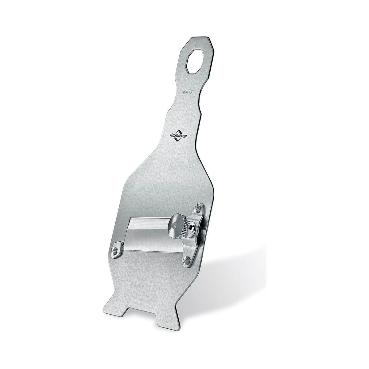 Der KÜCHENPROFI Trüffelhobel rückt der kulinarischen Kostbarkeit behutsam zu Leibe. An der Rändelschraube stellen Sie die gewünschte Stärke ein – von 0,2 bis 3 Millimeter. Das Gerät ist somit auch geeignet zum Schneiden von Parmesan, Zwiebeln, Knoblauch, Champignons, Rettich und Radieschen. Schließlich kommen Trüffel nicht jeden Tag auf den Tisch. Übrigens: Entgegen der Legende werden Schweine nur noch selten bei der Trüffelsuche eingesetzt, da die Borstentiere ihren Fund häufig verschlingen. Trüffelhunde hingegen machen sich nichts aus den wertvollen Pilzen. Frankreich und Italien sind bekannt für ihre Trüffel, auch aus Australien kommen schwarze Exemplare in guter Qualität. In Deutschland gilt die Delikatesse als besonders geschützte Art und darf nur mit einer Ausnahmegenehmigung gesammelt werden.