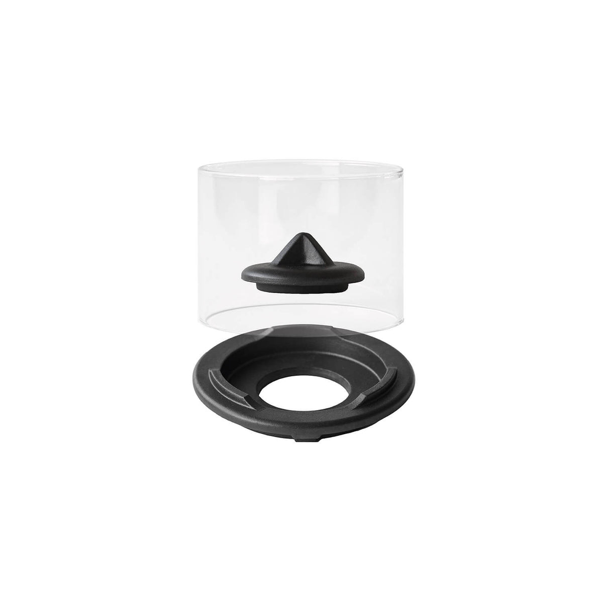 Die Glashaube wird von Hand aus hochwertigem Borosilikatglas hergestellt. Die Flamme ist damit vor Wind geschützt. Das brilliante Glas spiegelt die lebhafte Flamme und vervielfacht die Lichtwirkung. Das Schmelzfeuer mit Windglas spendet warmes, romantisches Licht. Die Glashaube verhindert einen versehentlichen Kontakt mit der Flamme und gibt Sicherheit für Kinder und Eltern. Bei korrekter Funktion des Schmelzfeuers wird das Glas warm, jedoch nicht heiß. Bei Berührung besteht keine Verbrennungsgefahr. Der mitgelieferte Löschdeckel wird auf die Öffnung des Aufsatzrings gesetzt, die Flamme verlöscht. Dazu muss die Glashaube nicht abgenommen werden.