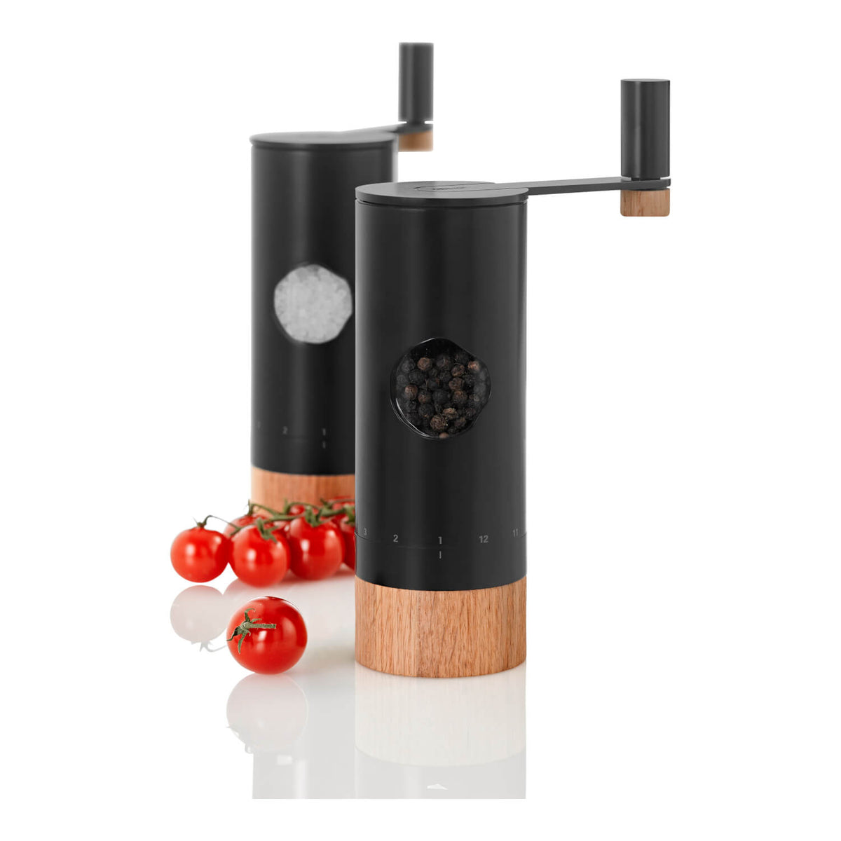 Produktinfos für AdHoc Pfeffer- & Salzmühle Set Twin mit CeraCut® Ceramic Mahlwerk aus Eichenholz & Kunststoff, 13,3 cm, black & grey