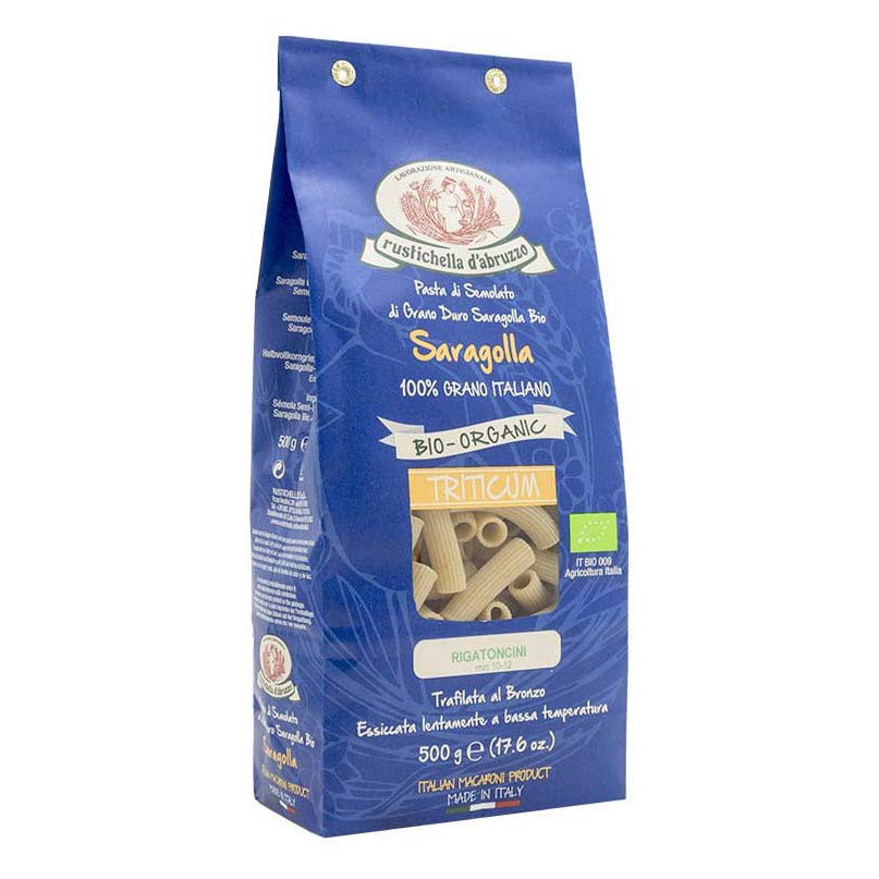 Rigatoncini di Saragolla 100% biologisch Rustichella dAbruzzo zeichnen sich durch die typischen Gewebestrukturen an der Oberfläche und den kleineren Durchmesser im Vergleich zu den klassischen Rigatoni aus. Auf jedem italienischen Tisch präsent, sind sie dank ihrer besonderen Textur, rau und porös, perfekt, um die besten Gewürze zu behalten. Wir empfehlen Ihnen, sie mit Arrabbiata oder mit Tomate und Basilikum Sauce zu kombinieren. Garzeit: 10-12 Minuten.