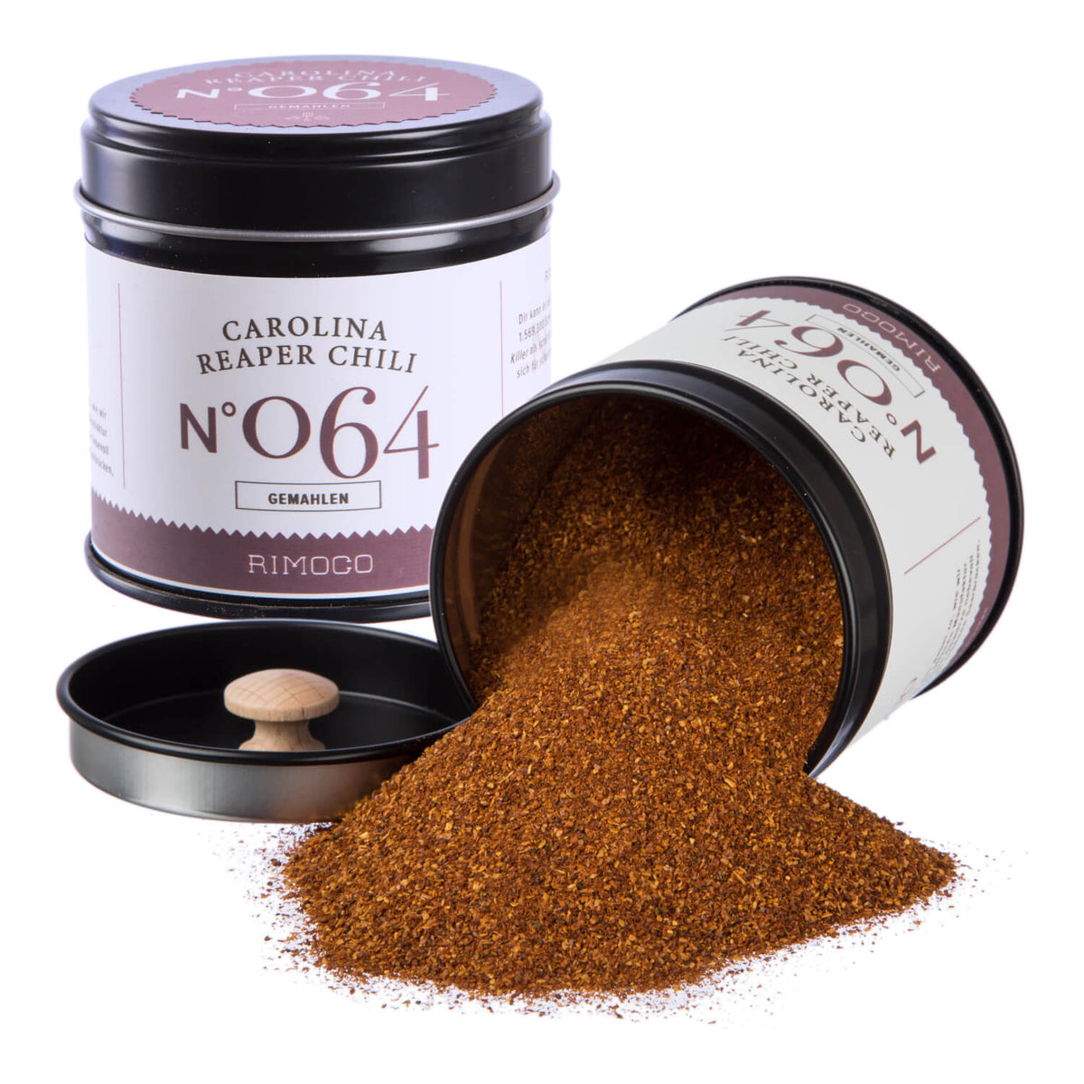 „Carolina Reaper“ ist einer der schärfsten Chili-Sorten, die es gibt. Der höchste gemessene Wert einer Schote lag bei 2,2 Millionen Scoville. Wir empfehlen beim Verzehr sich durch kleine Mengen an das Pulver heranzutasten und auch beim öffnen der Dose nicht direkt am Pulver zu riechen. Somit können Reizungen vermieden werden.