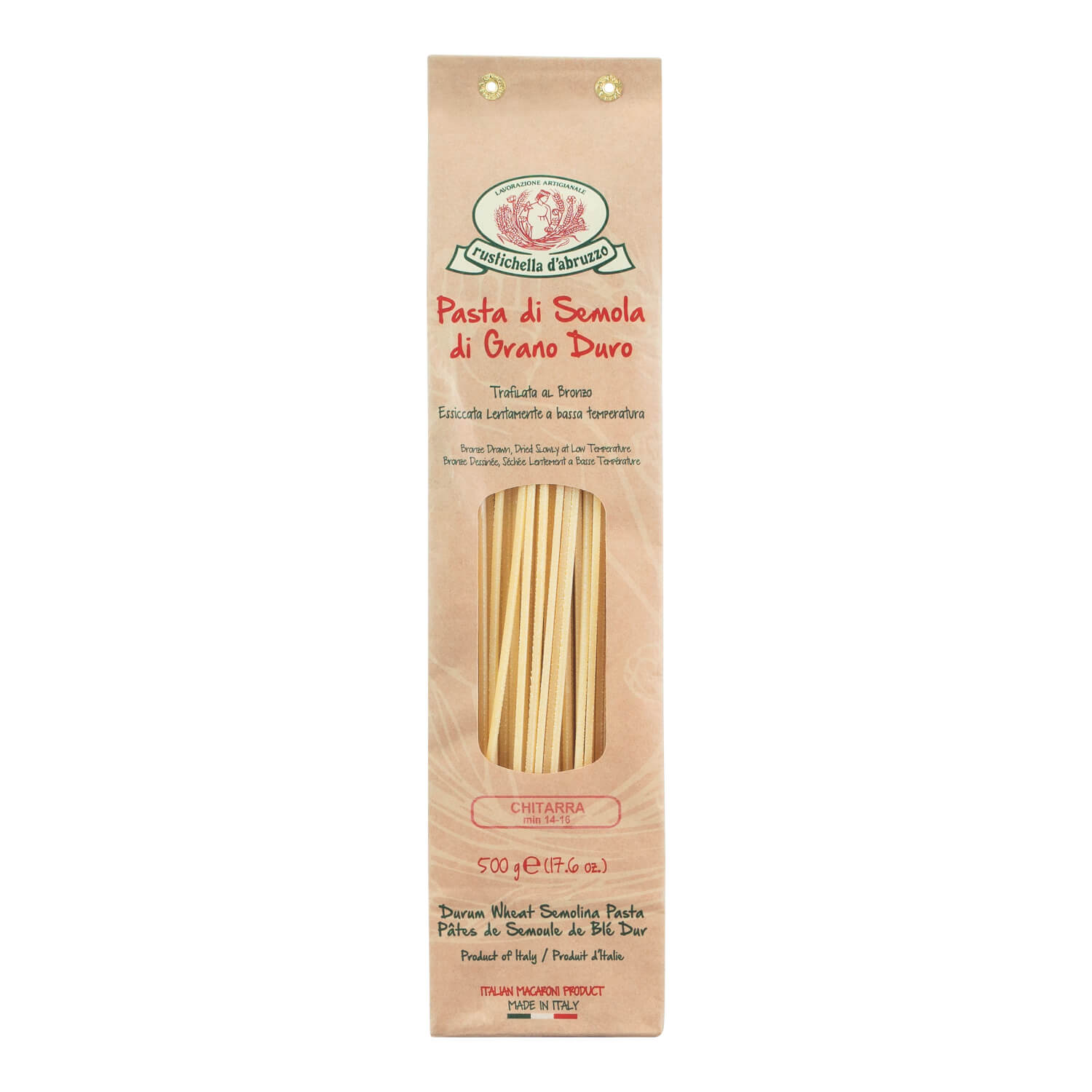 Die Form ähnelt der von Spaghetti, ist aber dicker und hat einen quadratischen von ca. 2 mm statt runden Querschnitt, was auf das typische Werkzeug zurückzuführen ist, das für die Zubereitung verwendet wird (die so genannte "chitarra"). Dadurch erhält diese Pasta eine feste Textur, die in der Lage ist, die Soße vollständig aufzunehmen, die von einer einfachen, aber köstlichen Tomaten-Basilikum-Soße über eine gehaltvollere und rustikalere Soße wie Wurst und Radicchio bis hin zu einer Soße wie dem "Pesto alla Genovese" aus Rustichella dAbruzzo reichen kann.