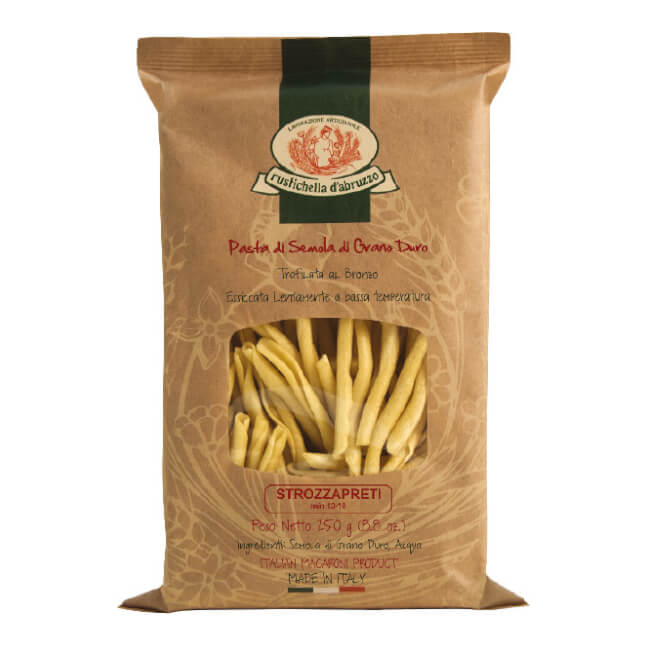 Sie sind wie lange, zentimeterlange Stöcke geformt und haben ihren Namen von der sprichwörtlichen und ironischen Unersättlichkeit der Priester. Sie passen sehr gut zu einer Sauce "Mari e Monti" mit Pecorino, grünen Bohnen und Muscheln oder zu Brokkoli und Wurst. Wir empfehlen auch, sie mit den Saucen Genovese und Pescatora von Rustichella dAbruzzo zu kombinieren.