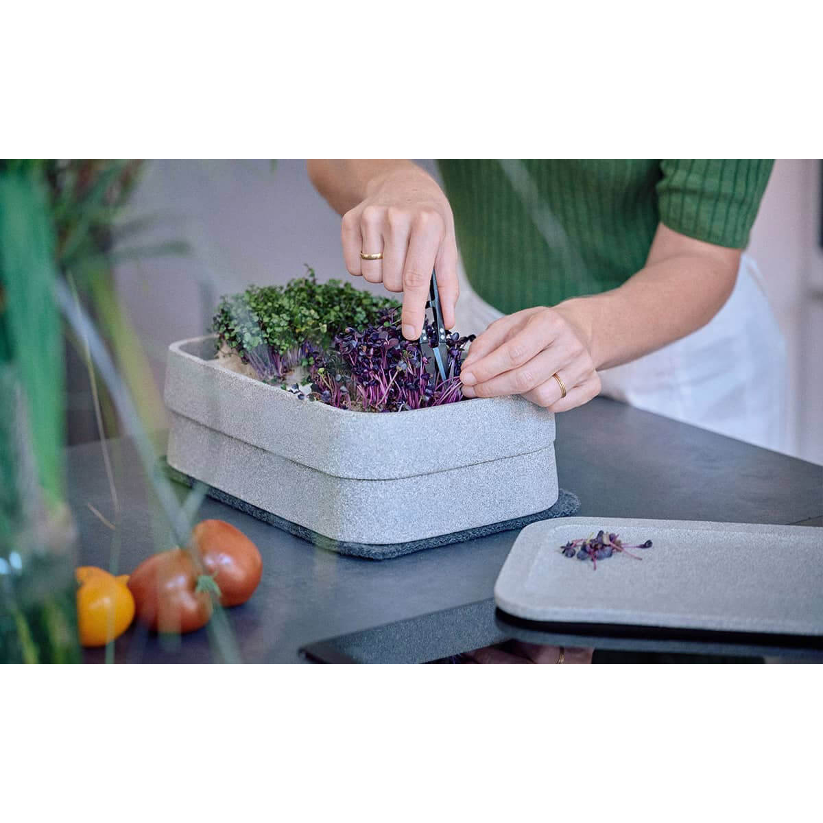 Mit dem passenden XL Ernteteller Granicium von Denk Keramik können Sie die Mikrogarten XL Schale bedecken, um für Dunkelheit während der Keimphase zu sorgen. Haben die Microgreens ihre gewünschte Größe erreicht, kann der Teller für die Ernte verwendet werden.