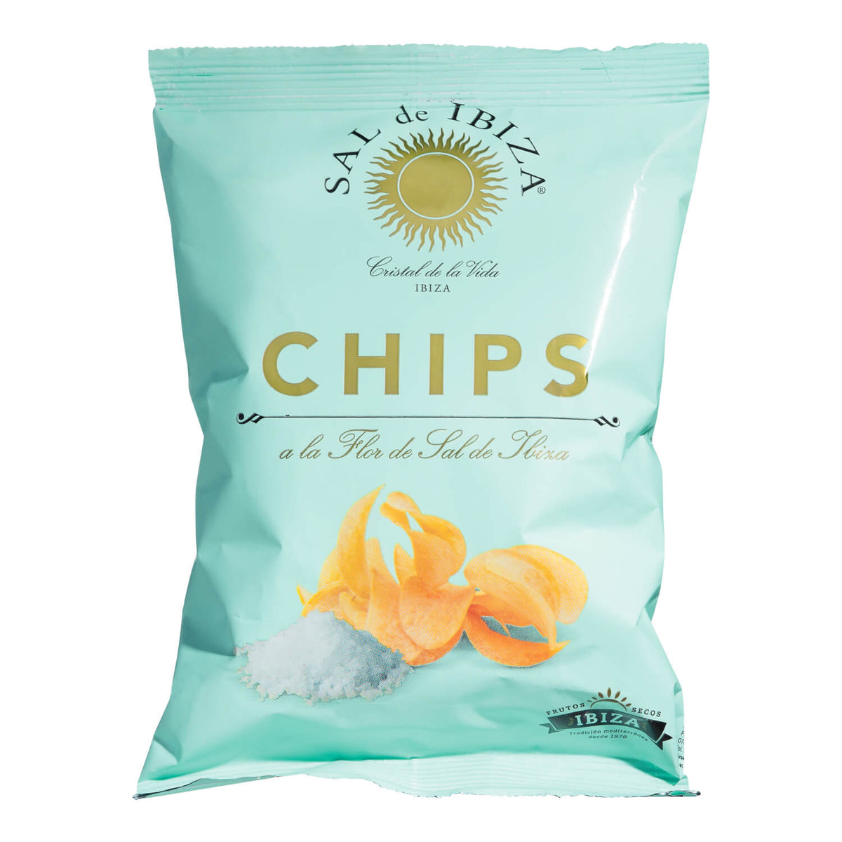 Hauchdünne Chips aus der aromatischen, goldgelben Kartoffelsorte Agria. Sie sind von Hand frittiert. Das Salz ist mild und würzig, nämlich Flor de Sal und Meersalz aus Ibiza. Der Direktimport aus Spanien ist appetitlich in Sonnenblumenöl gebräunt. Idealpartner zum Aperitif.